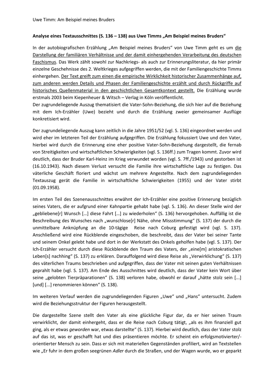 Nur dass er zu den tätern zählt anfänglich. Aus dem literarischen erinnerungsdiskurs um die jahrtausendwende ragt uwe timms erinnerungs buch am beispiel meines bruders das in der forschung als präzipitat derunzähligen autobio. Es arbeitet das geschehene nicht chronologisch auf eher sind es erinnerungsstücke momente die aneinandergefügt werden und die in der summe das bild ergeben einer familie wie sie es für deutschland wohl typisch war. Heinrich böll preis 2009 deutscher jugendliteraturpreis 1990.