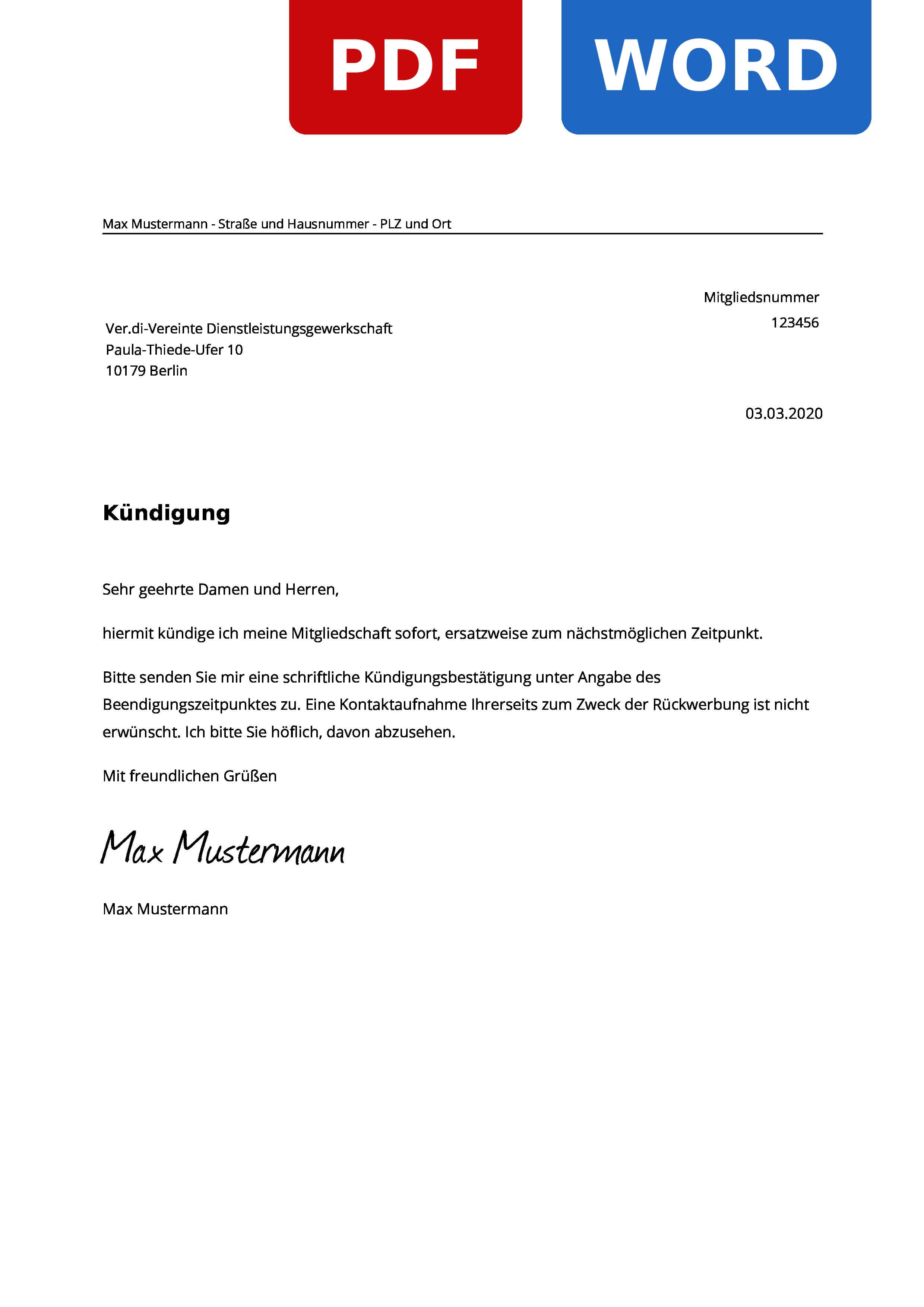 Verdi kuendigen muster. Du kannst deinen vertrag mit verdi essen schriftlich per e mail kündigen. Schnell und einfach in nur wenigen minuten erledigt. Du kannst deinen vertrag mit verdi hamm schriftlich per e mail kündigen. Bz westfalen verdi de ein kostenloses muster für deine kündigung per e mail findest du hier.