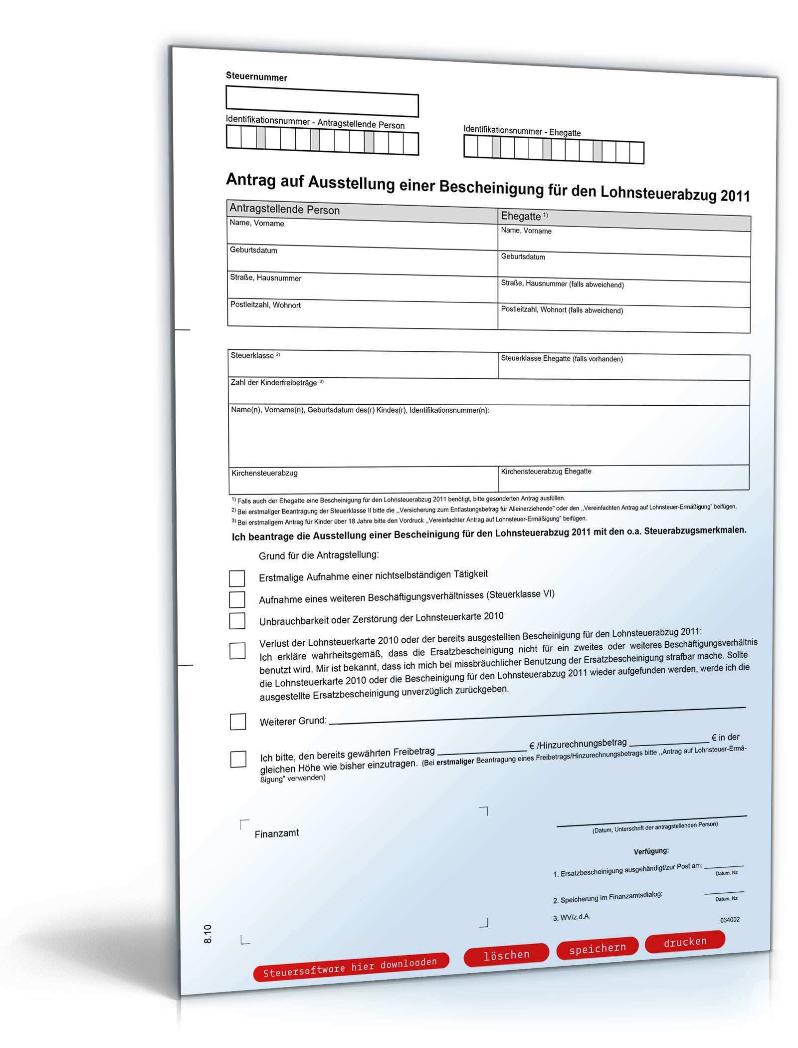 Vereinfachter antrag auf lohnsteuer ermäßigung a angaben zur person antragstellende person name vorname ehegatte name vorname. Umsatzsteuererklärung 2011 und folgende. Formular management system fms der bundesfinanzverwaltung. Verwenden sie bitte anstelle dieses vordrucks den sechsseitigen antrag auf lohnsteuer ermäßigung 2017.