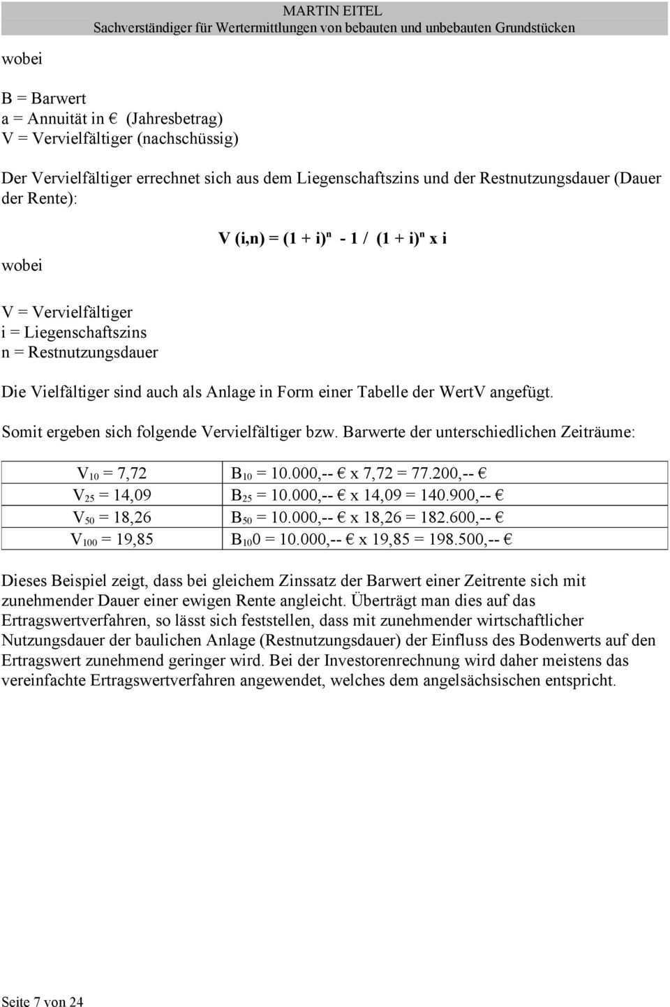 Vereinfachtes ertragswertverfahren beispiel. Ii r 37 14 maßgebliche mieten im ertragswertverfahren. Das verfahren lässt sich auf eine recht einfach formel reduzieren. Ein typisches beispiel dafür sind bahnhöfe. Wenn der kaufpreis nicht in fünf bis acht jahren aus den erträgen abgezahlt werden kann ist der wert nicht realistisch so birgit felden professorin an der berliner hochschule für wirtschaft und.