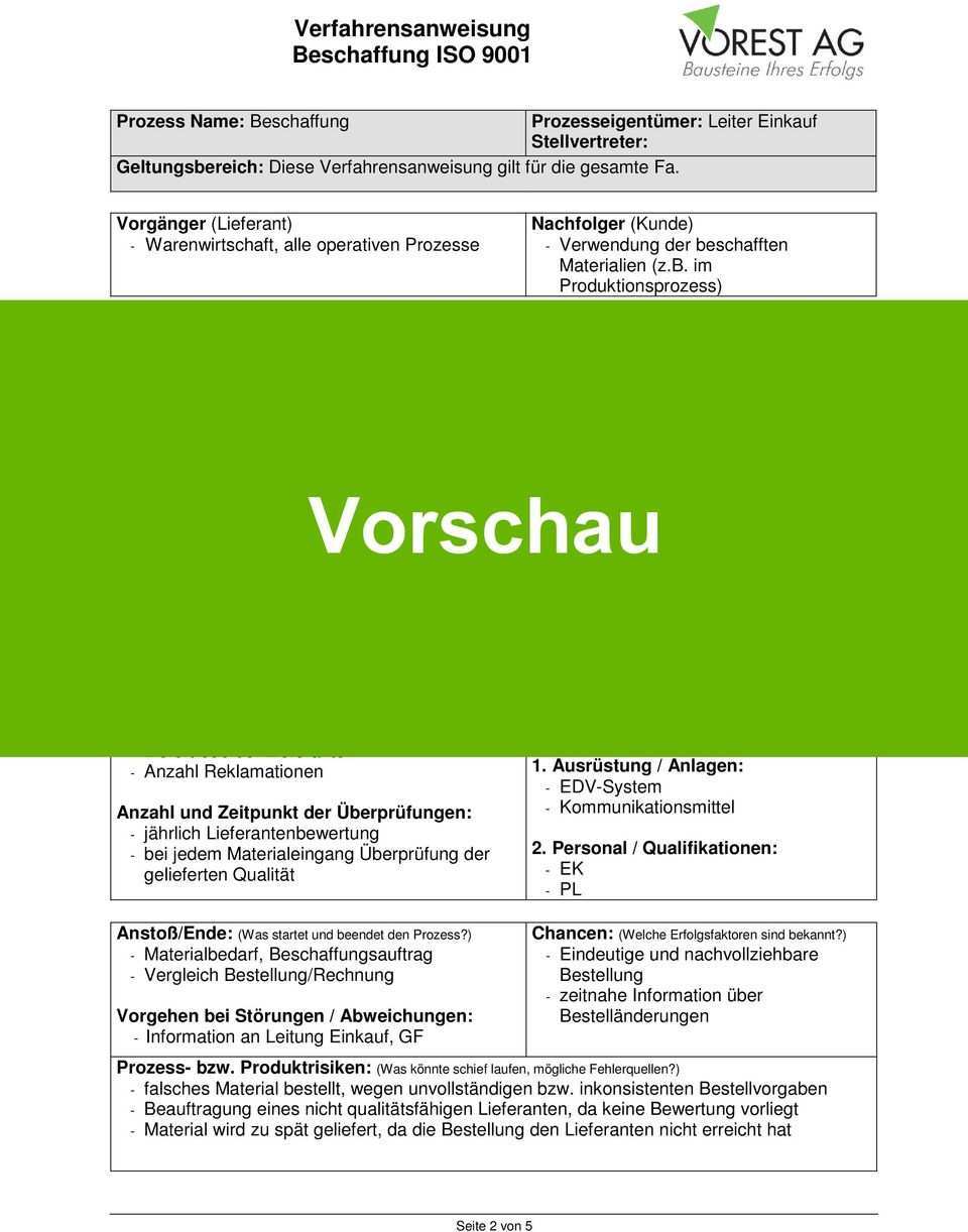 Unsere muster verfahrensanweisungen wurden bereits mehrfach zertifiziert und verhalfen somit vielen unternehmen zum begehrten zertifikat nach iso 9001. Check nu onze hoogstaande kwaliteit producten met de scherpste prijzen in europa europa s nr. Mit dieser muster vorlage können sie ganz einfach prozessbeschreibungen erstellen. Was ist der inhalt der prozessbeschreibung zur lenkung von dokumenten nach iso 9001.
