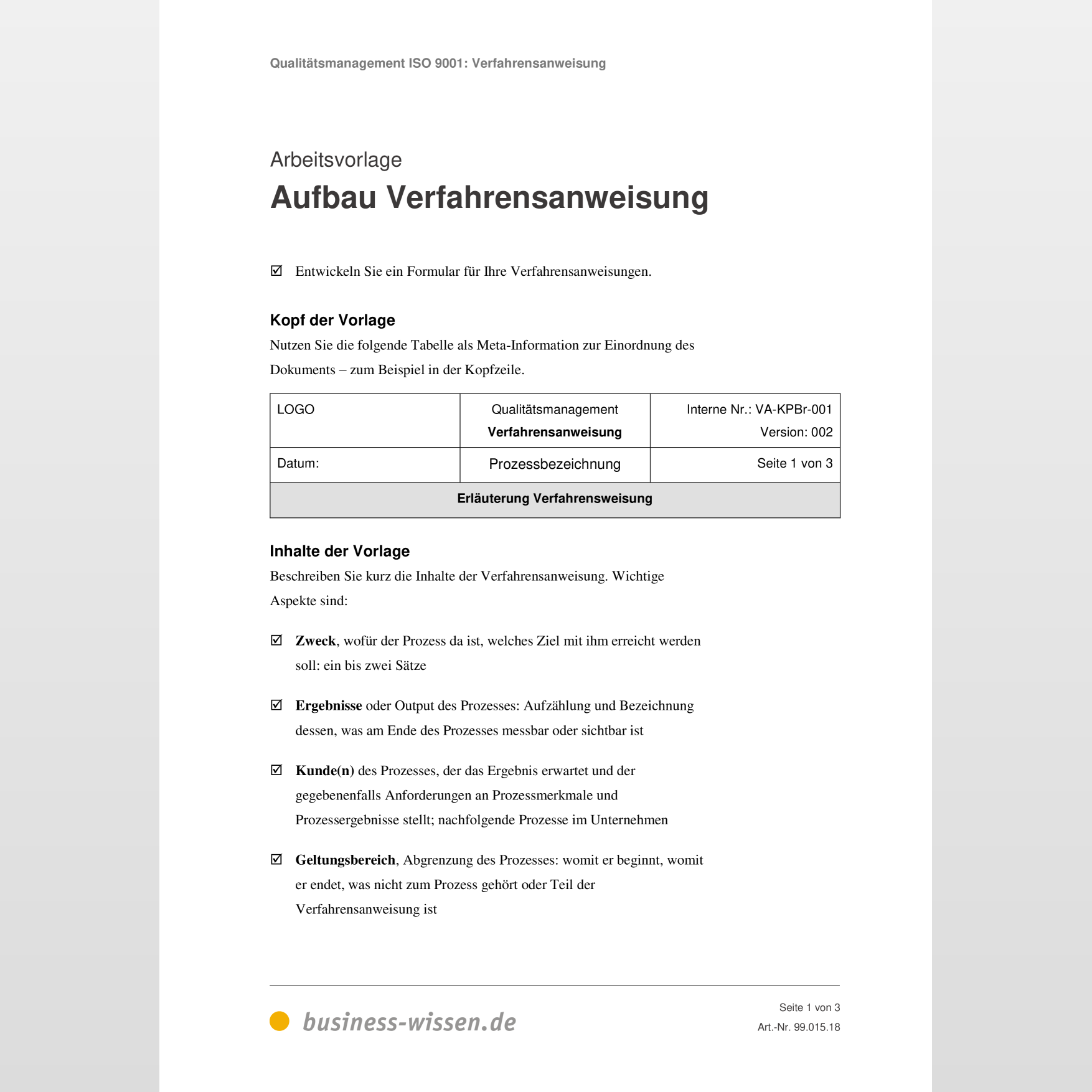 Verfahrensanweisung iso 9001 beispiel. In der heutigen prozessorientierten welt ist die verfahrensanweisung nicht mehr die erste wahl um einen prozess sinnvoll beschreiben zu können. Hierzu haben wir ihnen bereits eine große auswahl an fertigen muster vorlagen zur umsetzung der din en iso 9001 2015 und der din en iso 50001 2018 in unserem vorlagenshop zum sofortdownload bereitgestellt. Kosten der iso 9001. Beste kwaliteit lage prijze zeiterfassung und zulagenberechnun unsere muster verfahrensanweisungen nach din en iso 9001 2015 unsere fertigen muster verfahrensanweisungen vorlage word sind dokumente die im rahmen des qualitätsmanagements kapitel 7.