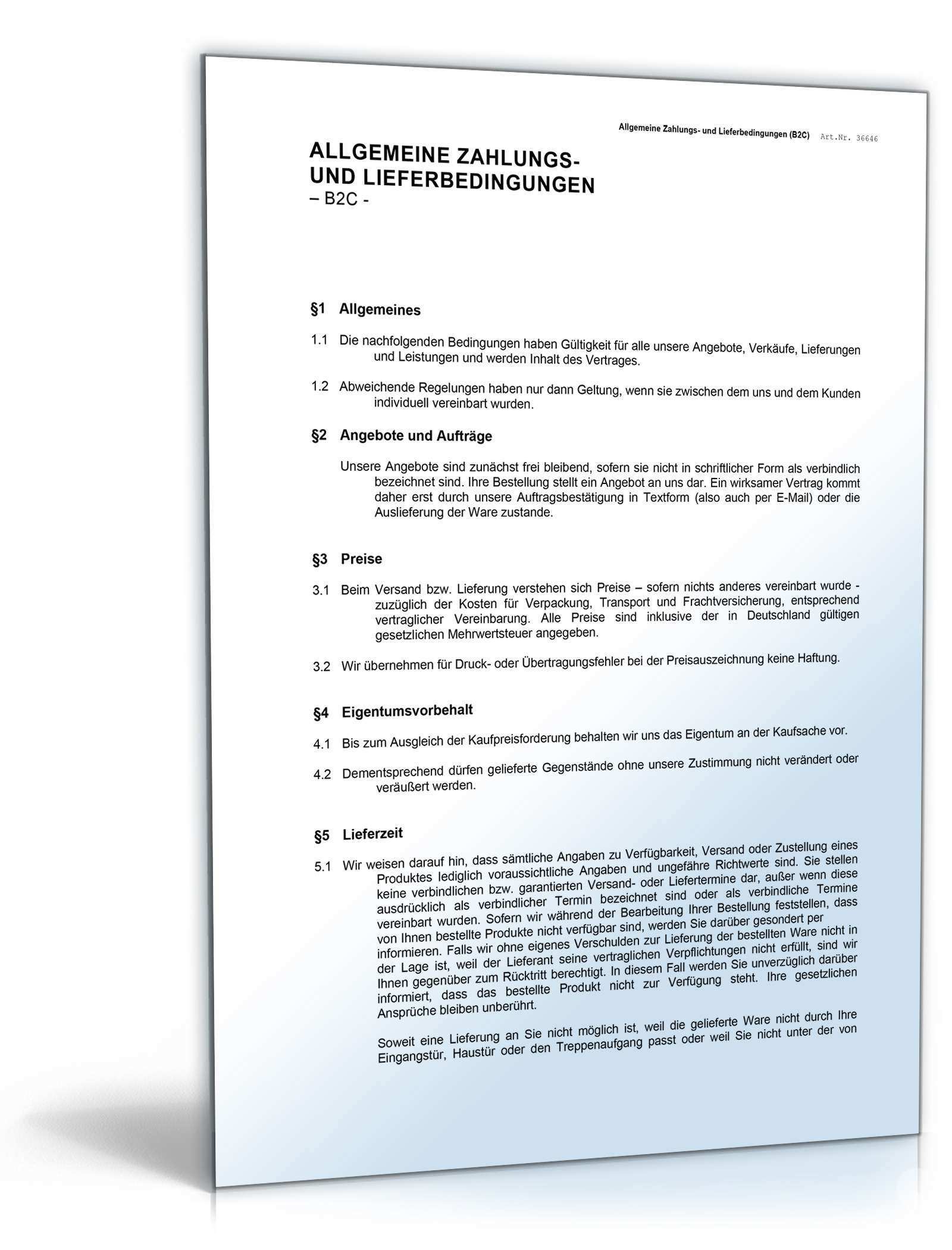 Versand Und Zahlungsbedingungen Muster