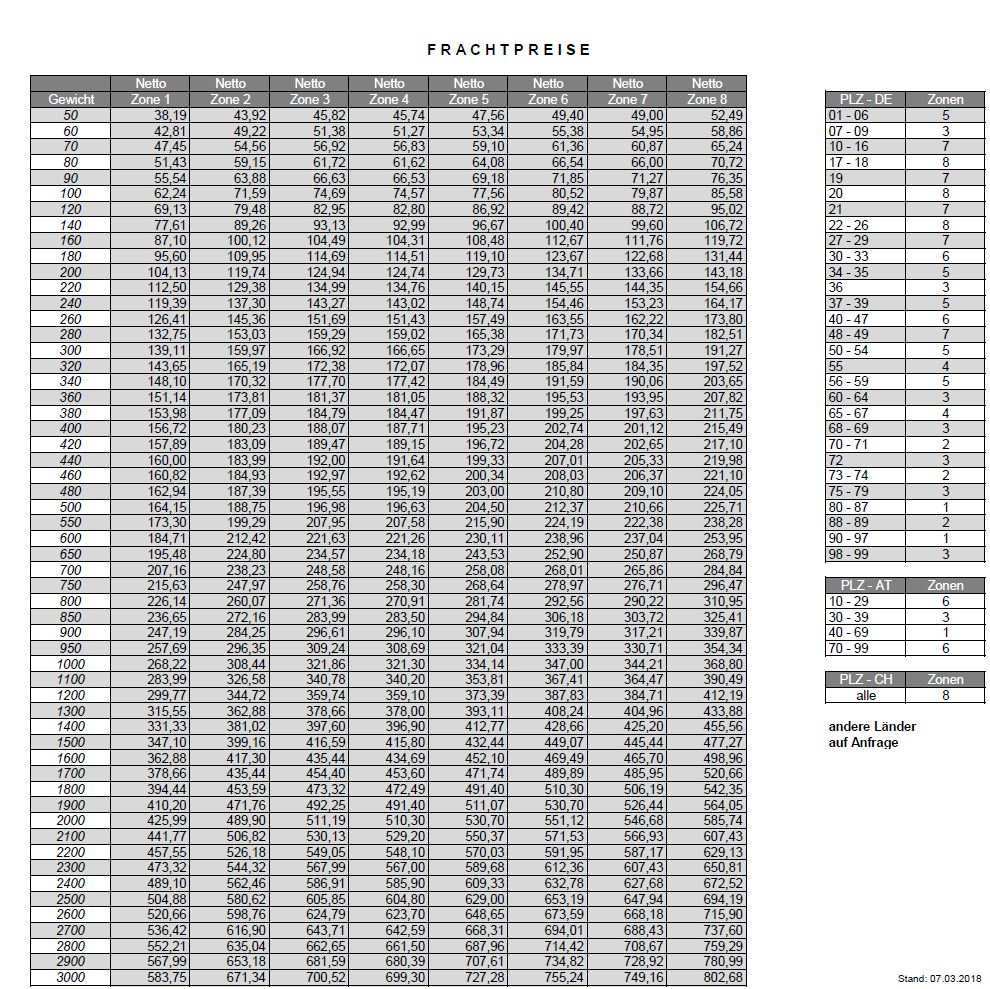 Der versandkostenangabe im in und ausland pauschal preisgestaffelt und gewichtsabhängiger versand.