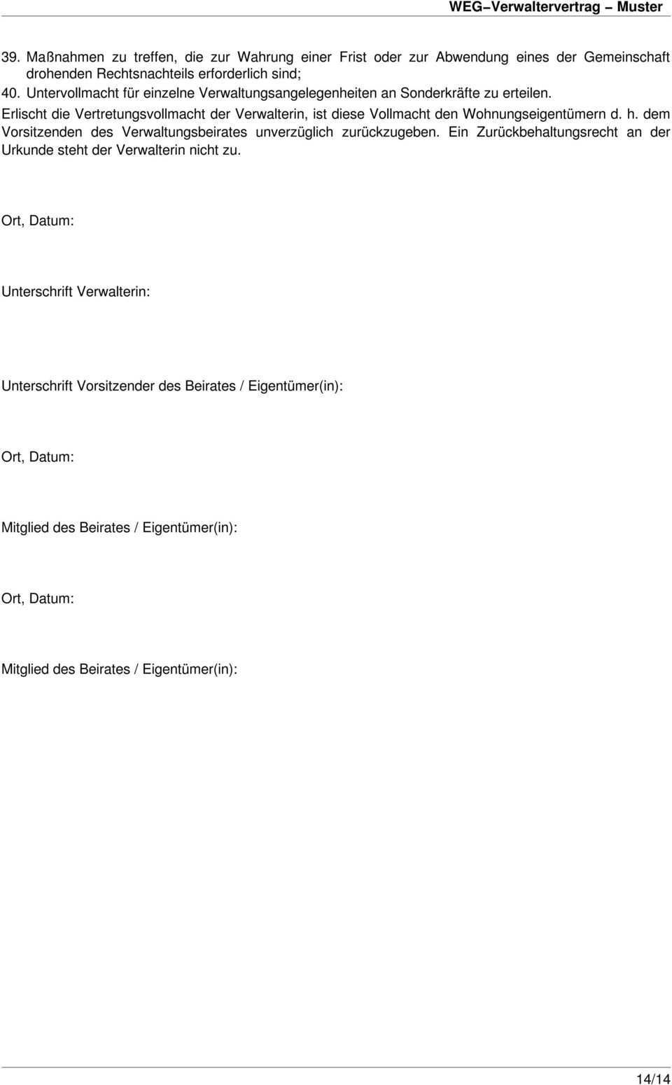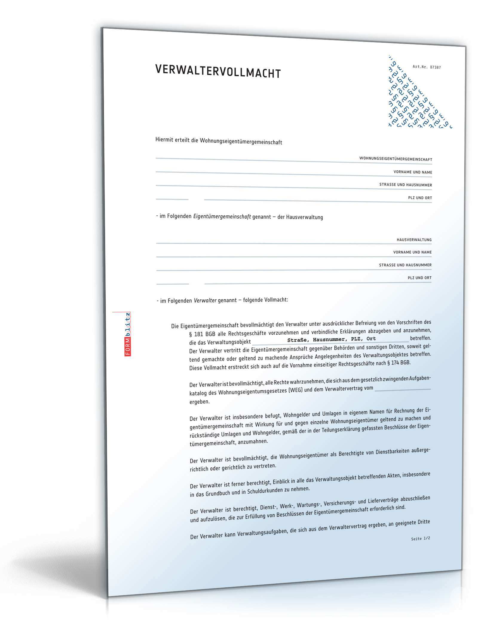 Verwaltervollmacht weg muster. Das gilt für die vollmachtsurkunde des weg verwalters mit muster im innenverhältnis gegenüber einer wohnungseigentümergemeinschaft ergeben sich die aufgaben und befugnisse des verwalters regelmäßig aus dem verwaltervertrag. Vollmacht für die hausverwaltung. Verwaltervollmacht weg muster bild doc seite 1 von 1 vollmachtsurkunde gemäß 27 abs 5 weg sebastian piechowski falkenseer chaussee 267 13583 berlin. Verwaltervertrag für wohnungseigentum nach dem weg zwischen der eigentümergemeinschaft und dem verwalter wird folgender vertrag geschlossen.