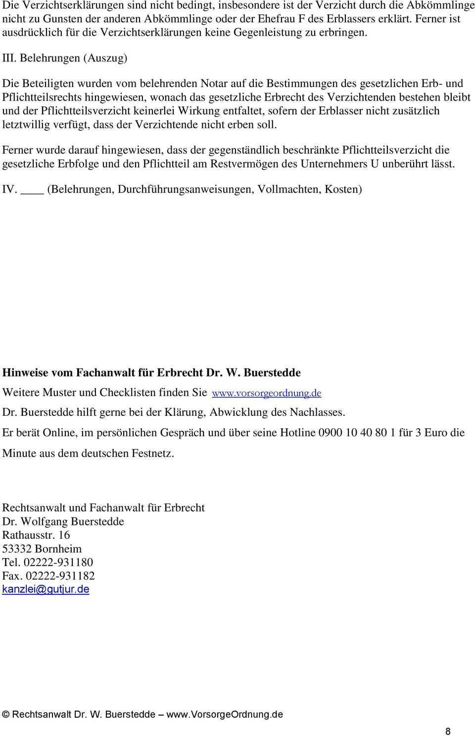 Verzicht auf pflichtteil muster. Dieser pflichtteilsverzicht ist aufschiebend bedingt durch die zahlung eines abfindungsbetrages von 80 000 eur der sofort fällig ist. Georg weißenfels maximilianstraße 2 80539 münchen weissenfels conjus de. Dabei sollten sie beachten dass es sich beim nachfolgenden pflichtteilsverzichtsvertrag um ein muster zur veranschaulichung handelt. Mit dem erbverzicht erklären erben den verzicht auf den gesamten nachlass was sogar auf abkömmlinge ausgeweitet werden kann.