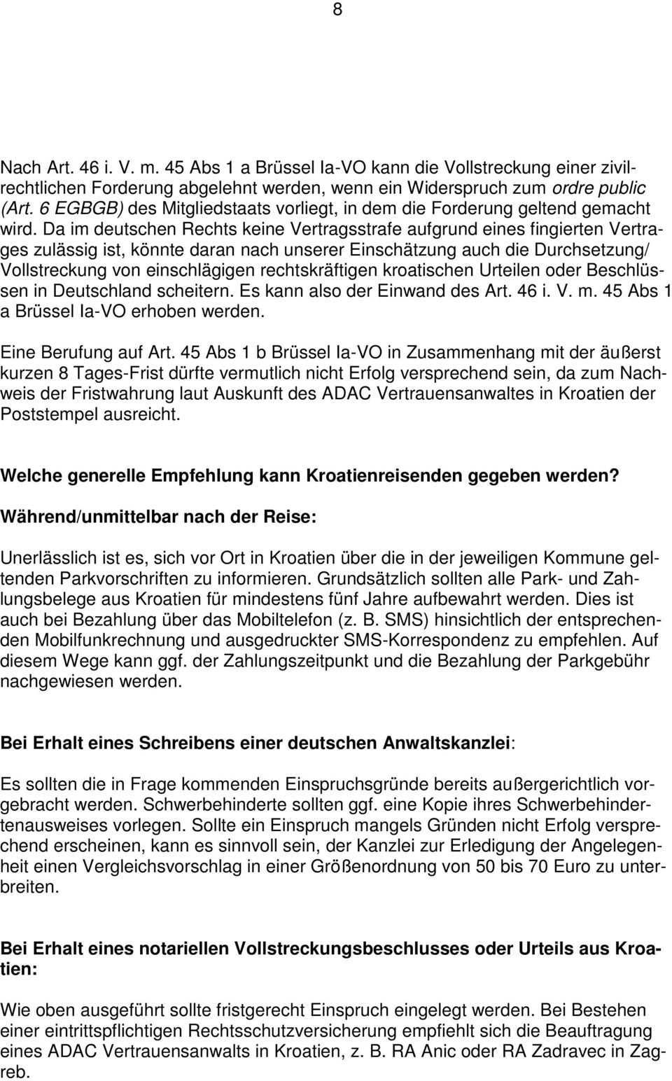 Vollstreckungsbeschluss Kroatien Einspruch Muster