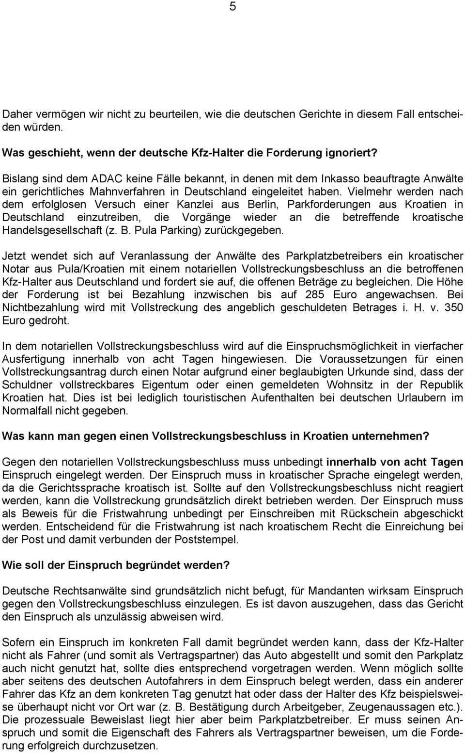 Gegen den mahn und den vollstreckungsbescheid kann er außerdem widerspruch bzw. Vollstreckungsbeschluss seitens pula parking d o o. Die zuvor bereits einen notariellen vollstreckungsbeschluss erhalten und gegen diesen beim zuständigen kroatischen zivilgericht einen. Nach wie vor empfehlen wir kfz haltern die einen einschlägigen notariellen vollstreckungsbeschluss aus kroatien erhalten haben unverzüglich dagegen einspruch einzulegen idealerweise mit hilfe eines kroatischen adac vertrauensanwalts wobei zuvor die.