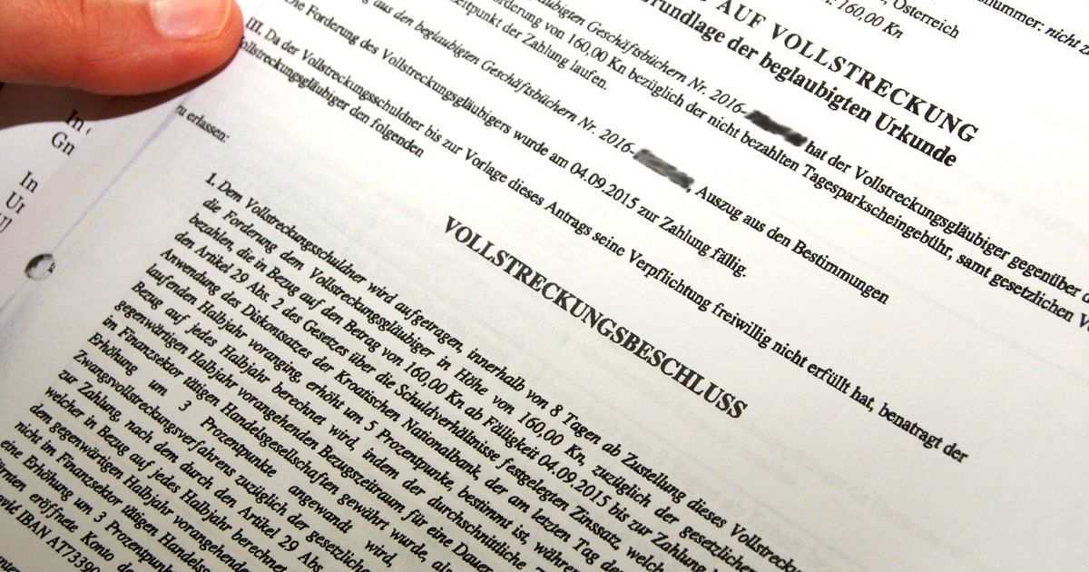 Vollstreckungsbeschluss bekommt man einen notariellen vollstreckungsbeschluss sollte man unbedingt innerhalb von acht tagen einspruch mittels einschreiben mit rückschein erheben. Hier ist jedoch zu beachten dass dieser in kroatischer sprache als amtssprache verfasst werden müsste. Aus kroatien damit ich hätte im sommer 2011 in pula mein auto geparkt dafür aber kein ticket gezogen. Hat der schuldner einspruch gegen vollstreckungsbescheid eingelegt gem.
