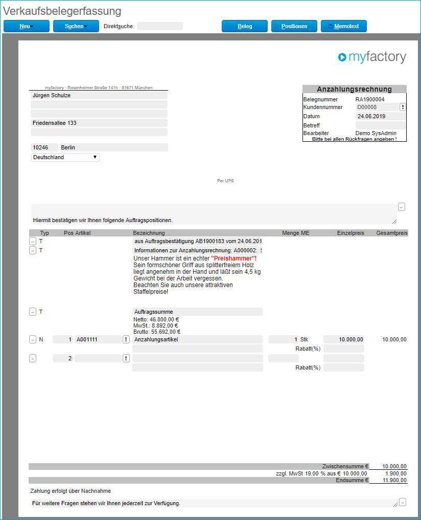 Vorkasse Rechnung Muster