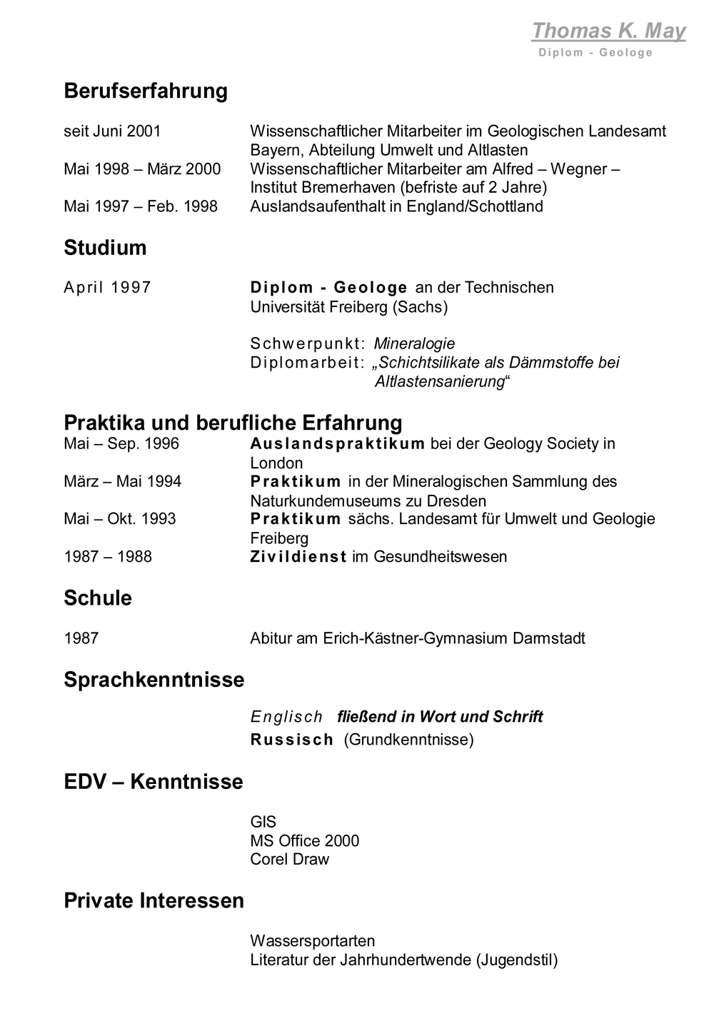 Gern kannst du über die kommentarfunktion auch verbesserungsvorschläge mitteilen. Eine verantwortungsvolle stelle bei der ich meine marketing und vertriebskenntnisse anwenden und ausbauen kann oder einen einstieg in die leitungsebene zu bekommen um den kundenservice marktgerecht auszubauen. Sie beginnen im lebenslauf mit ihrer aktuellen station und tasten sich dann weiter nach hinten vor. Dazu muss ein komplexes antragsformular ausgefüllt mehr noch bei der arzneimittelbehörde eingereicht werden.