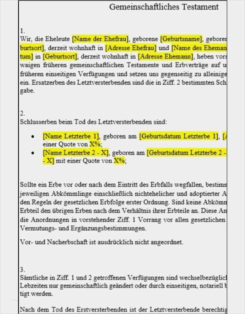 Text der erkennen lässt dass es sich um den letzten willen handelt testament datum seiner errichtung ort an dem das testament geschrieben wurde unterschrift mit vor und zunamen am ende des testaments. Mit einem berliner testament sorgen eheleute und lebenspartnerschaften dafür dass der länger lebende ehepartner das vermögen des anderen vollständig erbt.