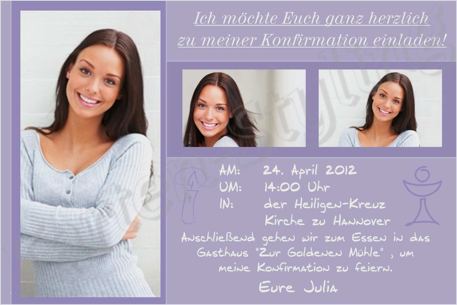 Sie haben jetzt eine vorlage via beispielinhalt erstellt. Persönlicher und darum wertvoller ist allerdings immer noch die karte von hand unterschrieben und per post verschickt. Auf unseren seiten finden sie für die kommunion viele verschiedene vorlagen und texte. Sie können aus dutzenden vorlagen auswählen die alle bereits vorkonfiguriert sind.
