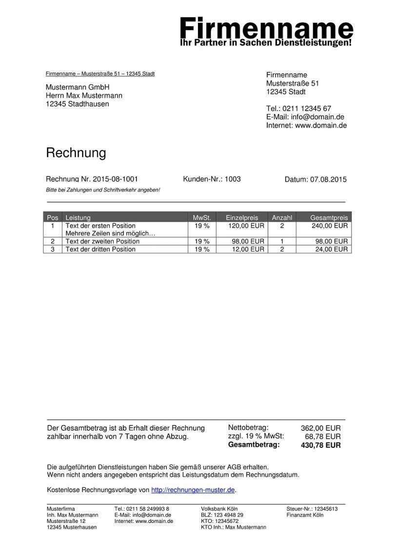 Als privatperson ist es nicht deine pflicht eine rechnung auszustellen oftmals wird allerdings eine vom geschäftspartner verlangt. Bei fragen wenden sie sich bitte an die wirtschaftskammer ihres bundeslandes. 99 muster beispiel und formatvorlagen. Nutzen sie unsere praktische vorlage für ihr unternehmen.