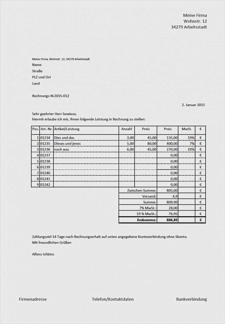 Vorlage Privatrechnung Ohne Mwst