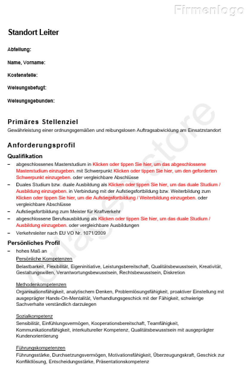 Stellenbeschreibung leiter in in der fertigung i n h a l t s ve r z e i c h n i s stellenbeschreibung für eine n. Muster stellenbeschreibung logistikleiter fakten zum logistikleiter um logistikleiterin zu werden sollte man eine ausbildung als speditionskaufmann absolvieren und sich dann mit fortbildungen für diesen posten qualifizieren. Download stellenbeschreibung muster projektmanagerin m w d jetzt hast du alle relevanten informationen um eine aussagekräftige stellenbeschreibung für eine projektmanagerin zu schreiben. Unsere stellenbeschreibung muster projektmanagerin kannst du dir hier kostenlos runterladen zur vorlage als pdf und word datei.