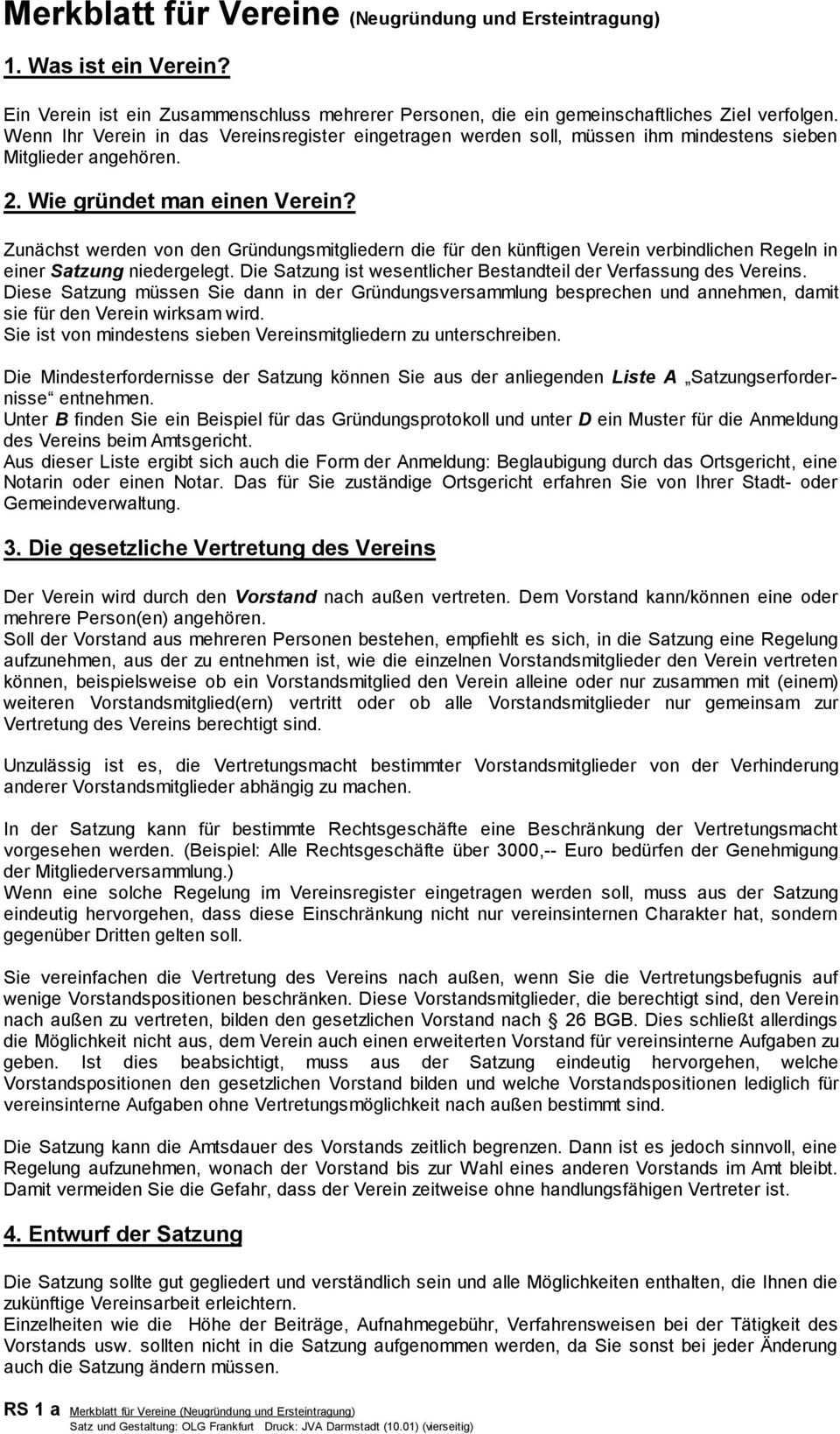 Ist ein verein in das vereinsregister eingetragen müssen folgende änderungen des vertretungsberechtig ten vorstandes in der satzung auch vorstand nach 26 bgb genannt zur eintragung angemeldet werden.