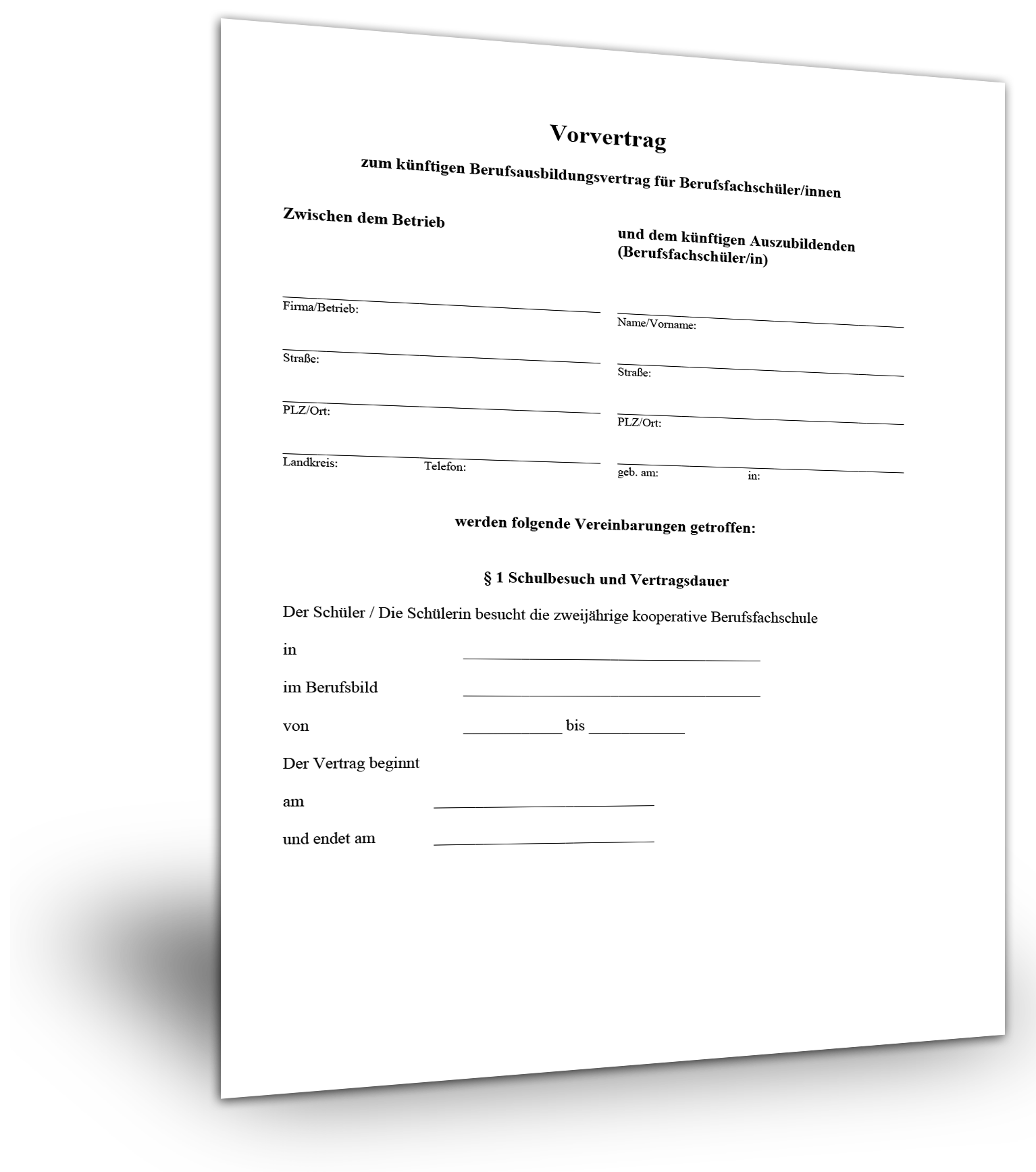 Vorvertrag muster karrierebibel de zwischen name anschrift nachfolgend arbeitgeber genannt und name anschrift nachfolgend arbeitnehmer genannt wird folgender vorvertrag geschlossen. Dieses muster dient vor allem der inspiration und muss den erfordernissen des unternehmens angepasst werden. Mit bestehen der abschlussprüfung. Wir haben hier für sie ein kostenloses muster eines vorvertrags gestaltet.