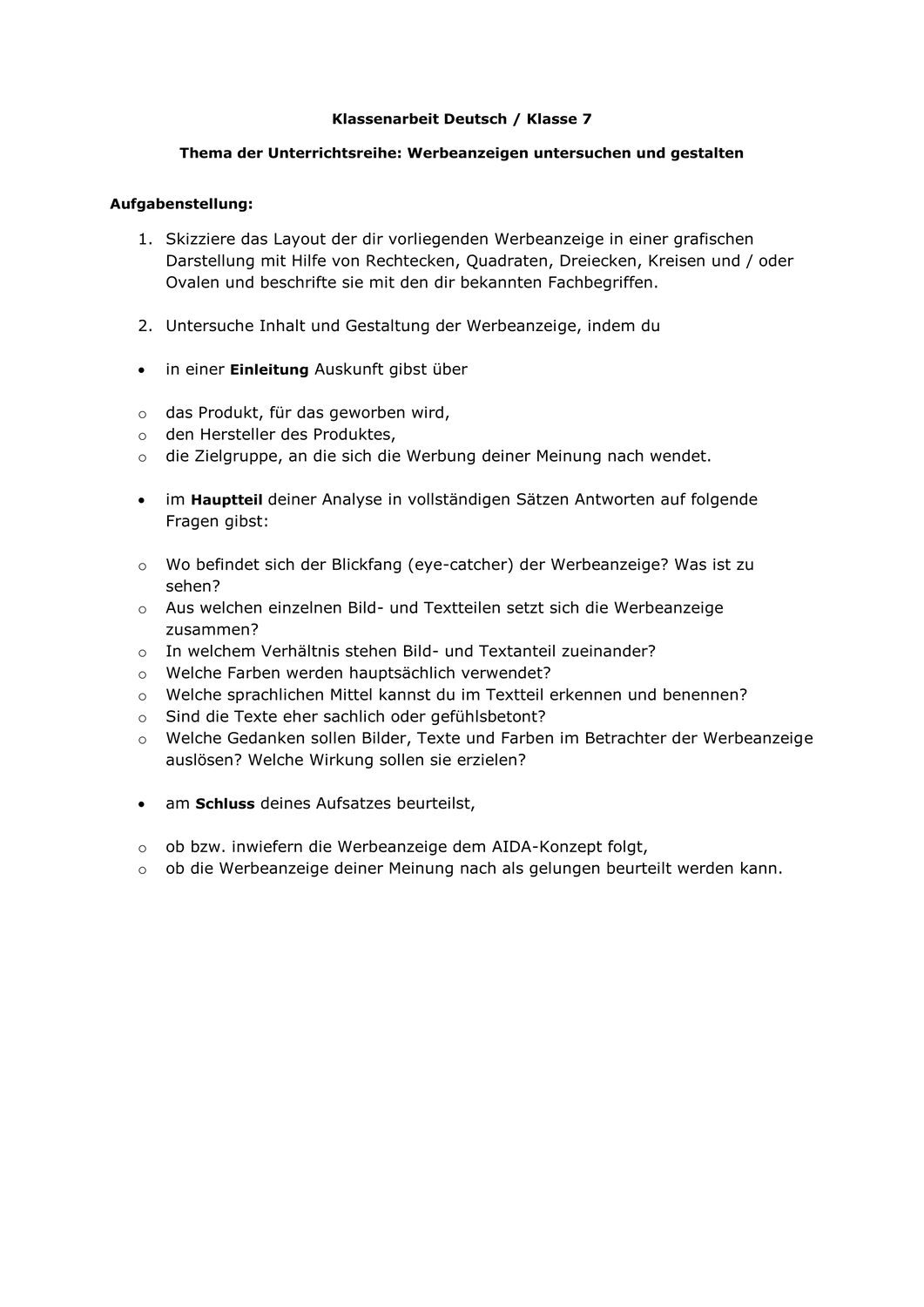 Die inspirationen können ihren ursprung in unterschiedlichsten quellen haben wichtig ist nur dass diese nicht 1 1 übernommen werden. Vorbereitung für die analyse einer werbeanzeige sieh dir genau die werbeanzeige an und notiere kurz die folgenden punkte. Welche zielgruppe hat die werbeanzeige. Die vorliegende farbige werbeanzeige wa im din a4 format ist im fach bzw.