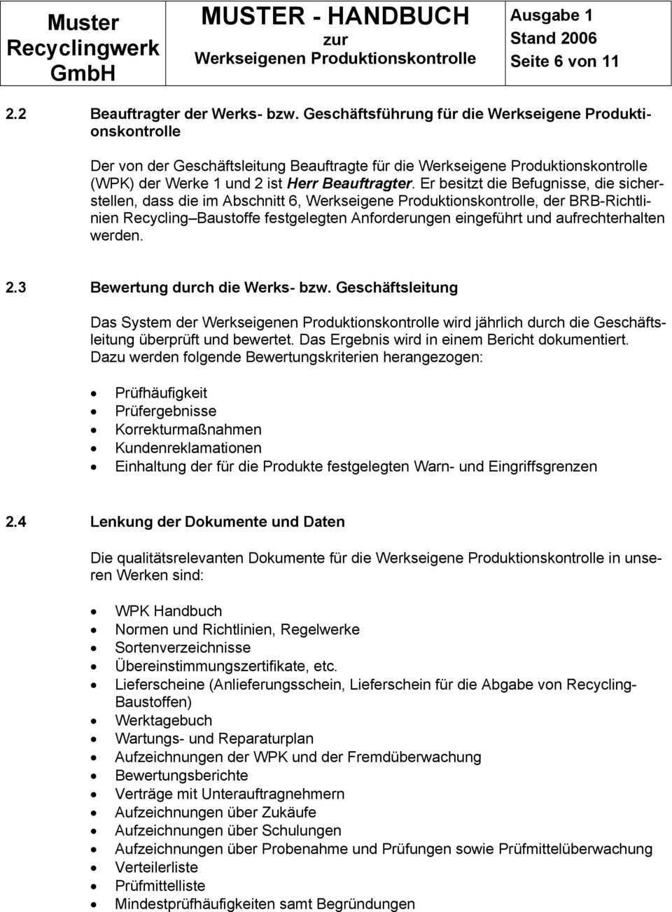 Werkseigene produktionskontrolle muster. Dieser wurde durch die delegierte verordnung eu nr. 1 4 welche deklarationsmethode wird angewendet. Die nationalen anwendungsdokumente zu diesen normen tl gestein stb tl sob stb wie auch die din fordern ein handbuch für die werkseigene produktionskontrolle wpk. Alle vom hersteller vorgegebenen daten anforderungen und vorschriften sind systematisch in form schriftlicher.