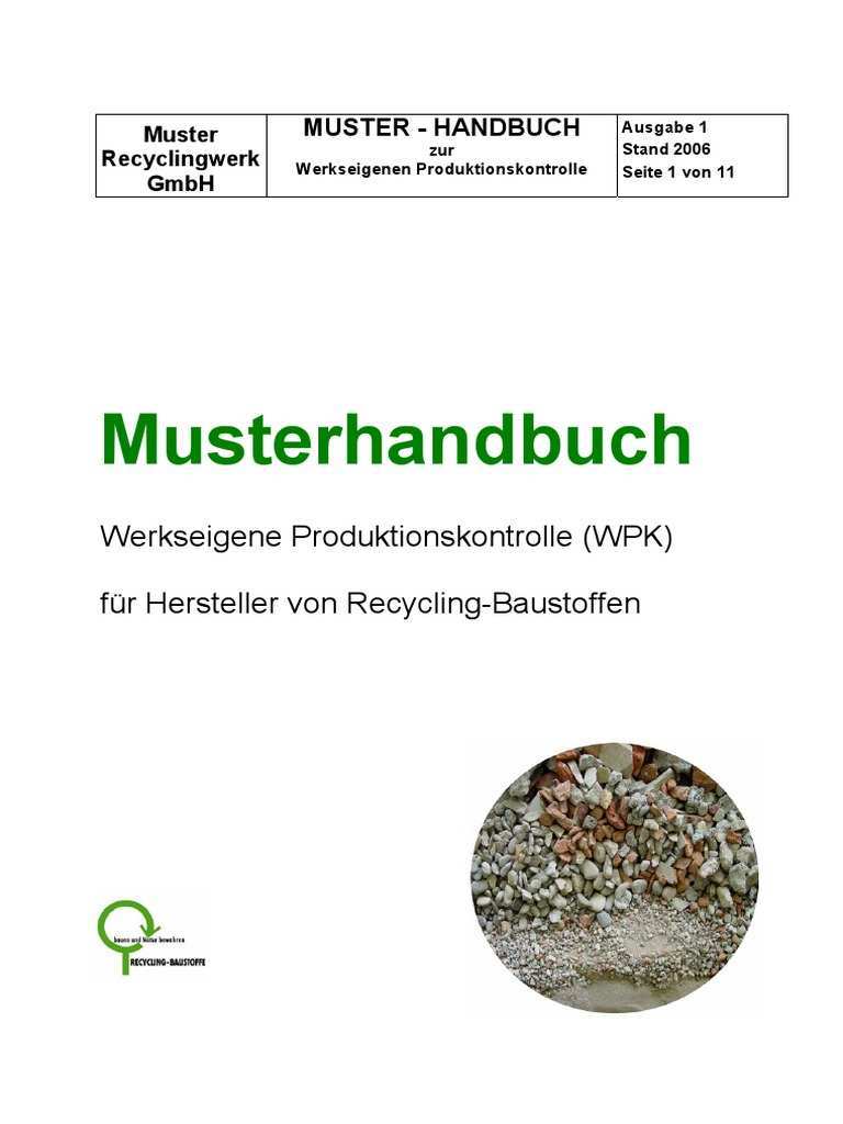 Da recycling baustoffe von diesen normen mit geregelt werden soll mit dem vorliegenden muster handbuch hilfestellung. 10 2 werkseigene produktionskontrolle 10 3 fremdüberwachung durch eine anerkannte überwachungsstelle zusammenstellung der bilder 8 bis 84 anhang a informativ muster für übereinstimmungszertifikate nach kapitel 24 b mbo fassung 6 95 nach mitteilungen des dibt nr. Eindeutiger kenncode des produkttyps. Absatz 4 dieser vorschrift verweist hierbei auf das muster in anhang iii.