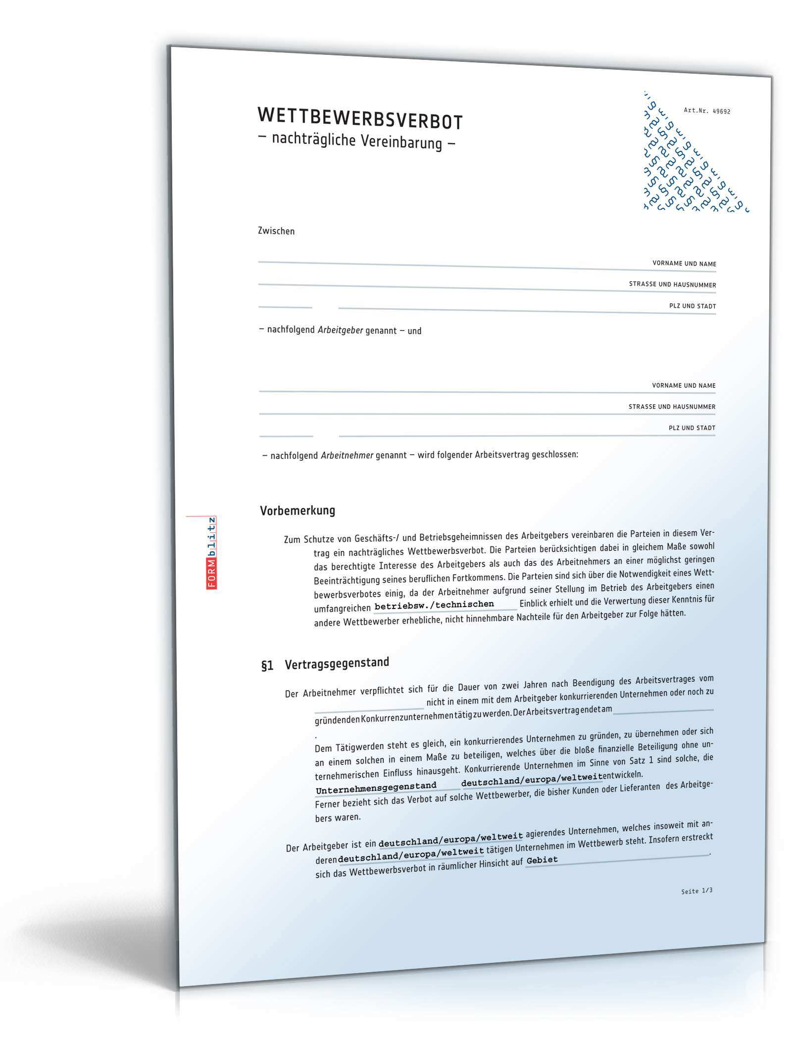 Kündigt der arbeitgeber ordentlich dann kann sich der arbeitnehmer vom wett bewerbsverbot lossagen wenn er für die beendigung des arbeitsverhältnisses keinen erheblichen anlass in seiner person gegeben hat 75 absatz 2 hgb. Mit dieser vorlage kann ein nachvertragliches wettbewerbsverbot vereinbart werden. February 13th 2020 arbeitsvertrag vorlage by frances carter. Darüber hinaus sollte der vertrag die.