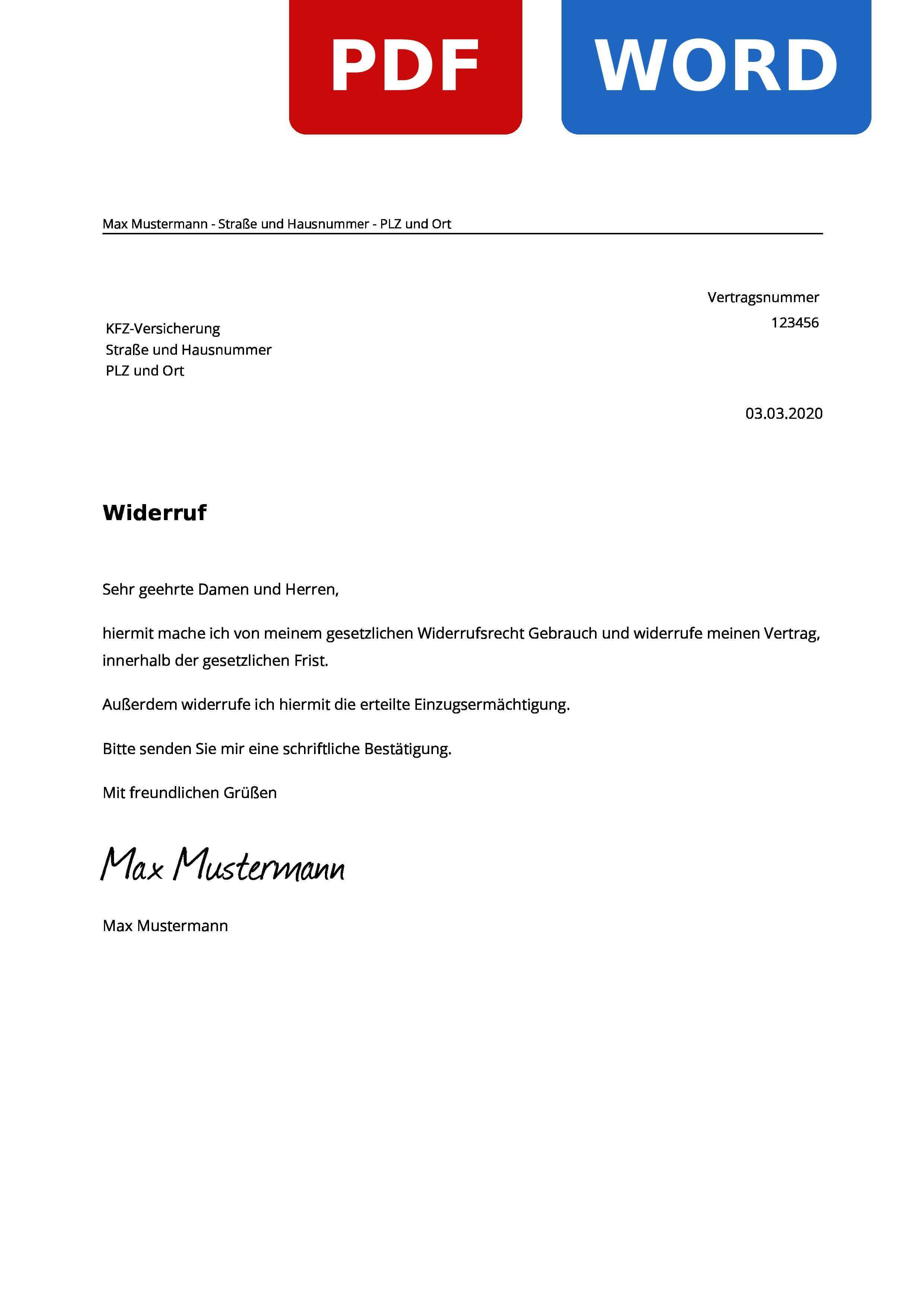 Es ist keine anmeldung notwendig. Mit dem ausfüllbaren formular erhältst du ein fertiges kfz versicherung widerrufsschreiben als pdf oder word zum ausdrucken. Erstelle einen widerruf kostenlos mit unserem formular das erstellen eines fertigen widerrufs ist mit der muster vorlage schnell und einfach erledigt. Sowohl für eine ordentliche als auch fristlose kündigung ihres vertrags.