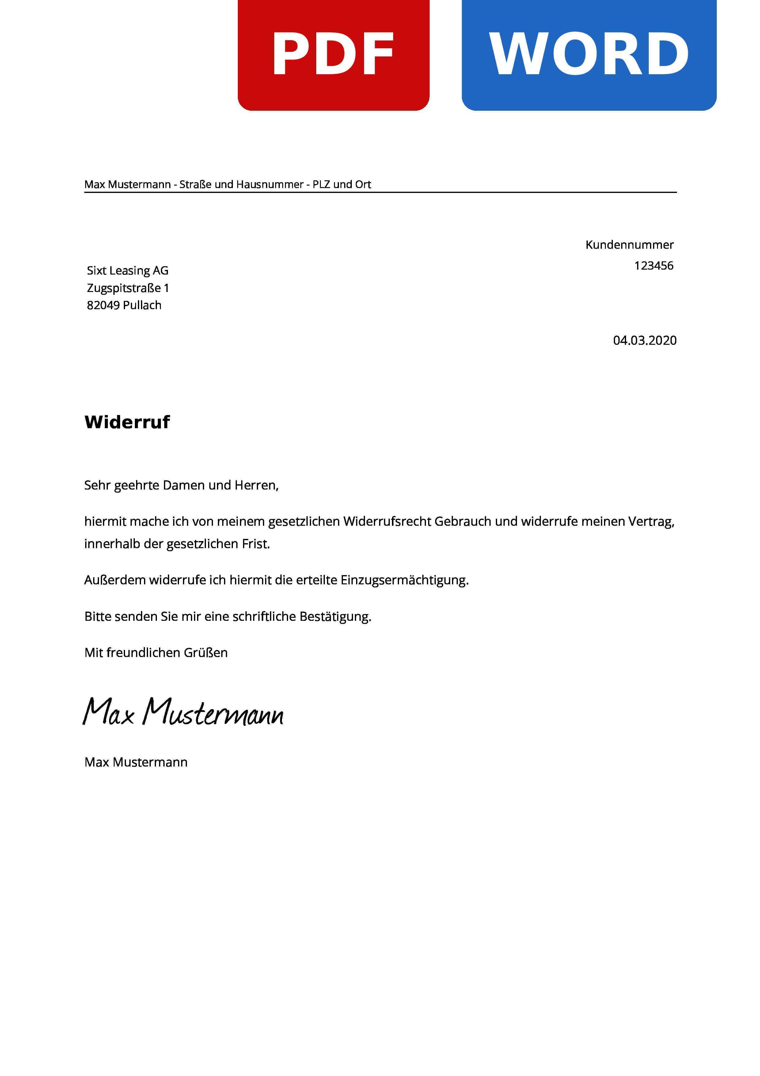 Widerruf Leasingvertrag Muster