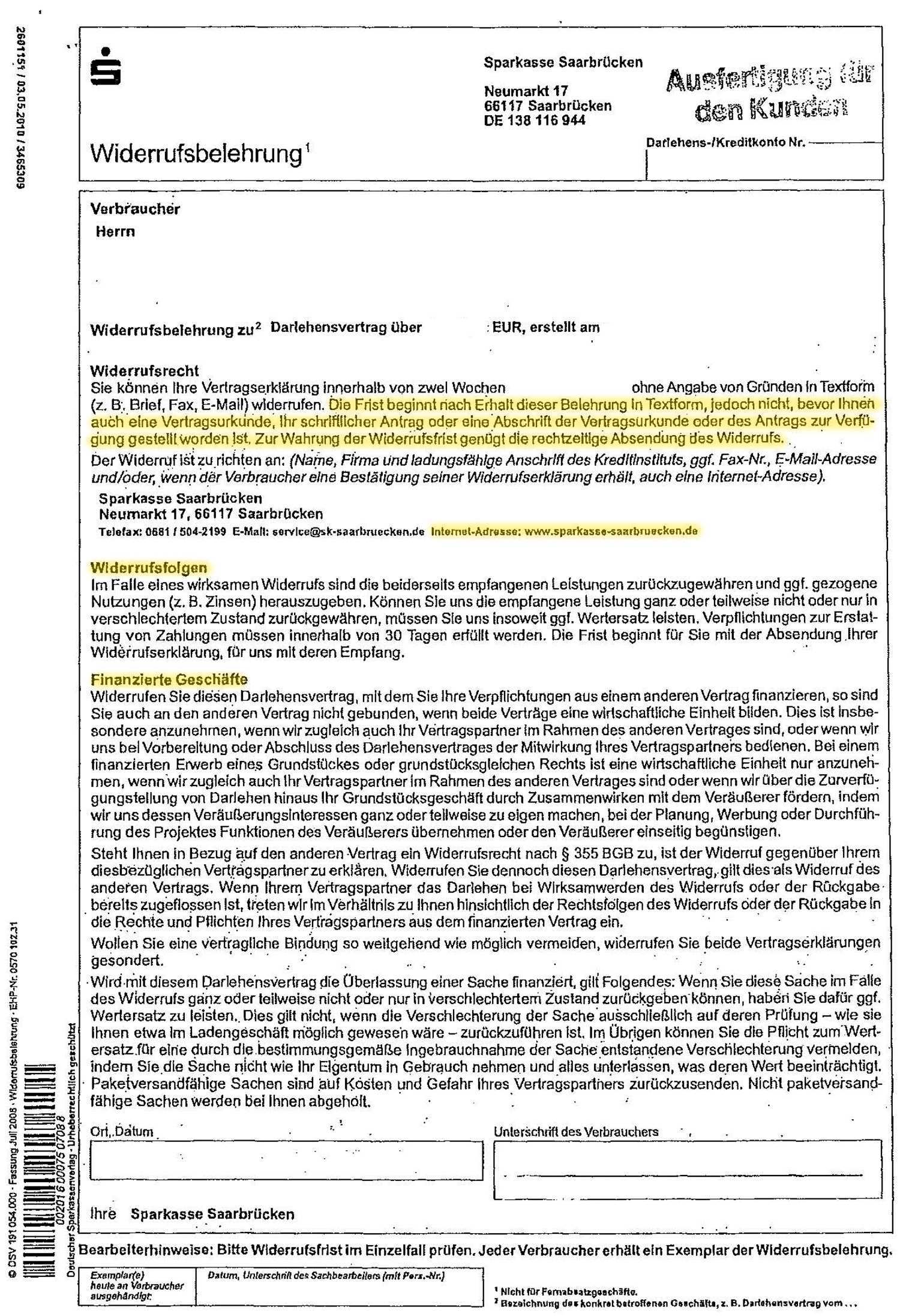 Ab mit te 2010 befand sich das mus ter für wider rufs be leh run gen für dar le hens und kre dit ver trä ge nicht mehr in der bgb info vo son dern wan der te in das egbgb. Um banken und sparkassen die ordnungsgemäße erfüllung ihrer belehrungspflichten bei verbraucherdarlehensverträgen zu erleichtern hat der gesetzgeber als anlagen zu den entsprechenden vorschriften des einführungsgesetzes zum bürgerlichen gesetzbuches egbgb gesetzliche muster für die widerrufsbelehrung jetzt widerrufsinformation. Zusätzlich entsprechen viele widerrufsbelehrungen auch nicht dem vom gesetz verlangten deutlichkeitsgebot. Ist der widerruf erfolgreich wird das kreditgeschäft rückabgewickelt.
