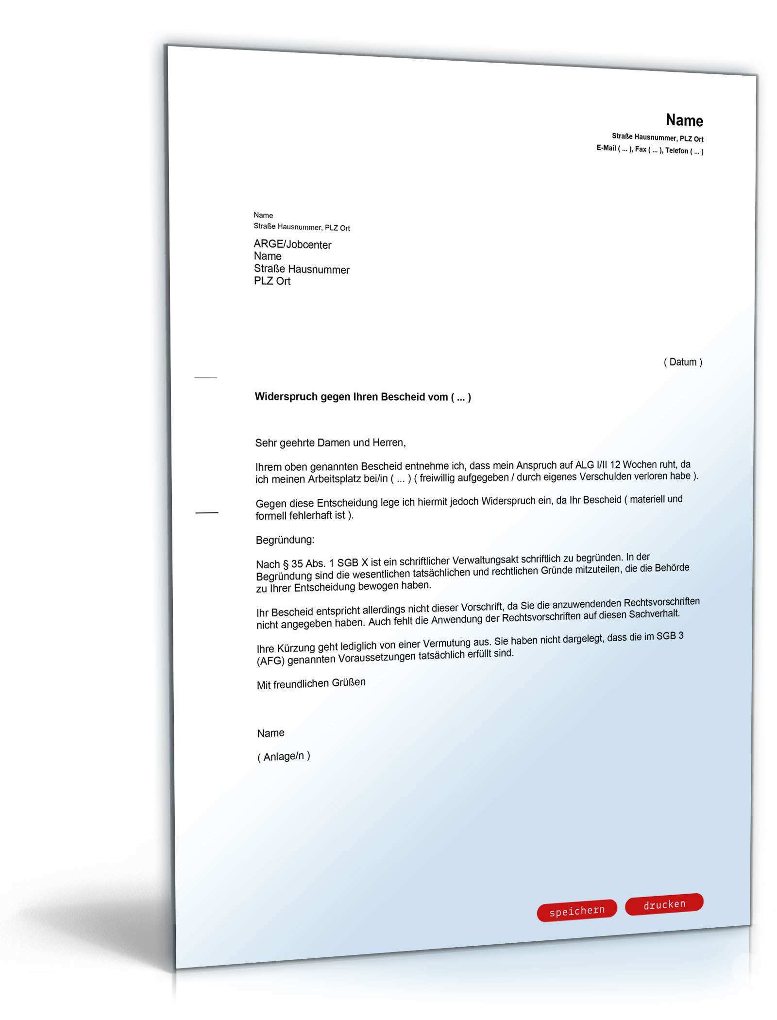 Das bedeutet du musst den widerspruch in einem schreiben formulieren und dieses schreiben handschriftlich unterschreiben. Welche gesichtspunkte argumente berechnungen gutachten etc. In 1 bis 2 minuten kannst du hier widerspruch gegen eine sperrzeit beim arbeitsamt erheben. 20 widerspruch muster arbeitsamt der themenentwicklungsabschnitt hilft zu wissen wie man jenes thema entwerfen weiterhin entwickeln kann.