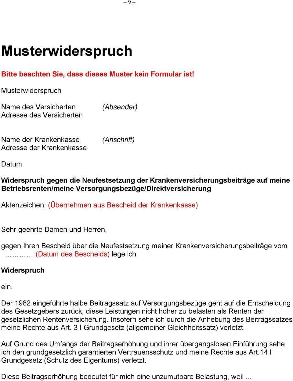 Widerspruch Gegen Beitragsbescheid Krankenkasse Muster