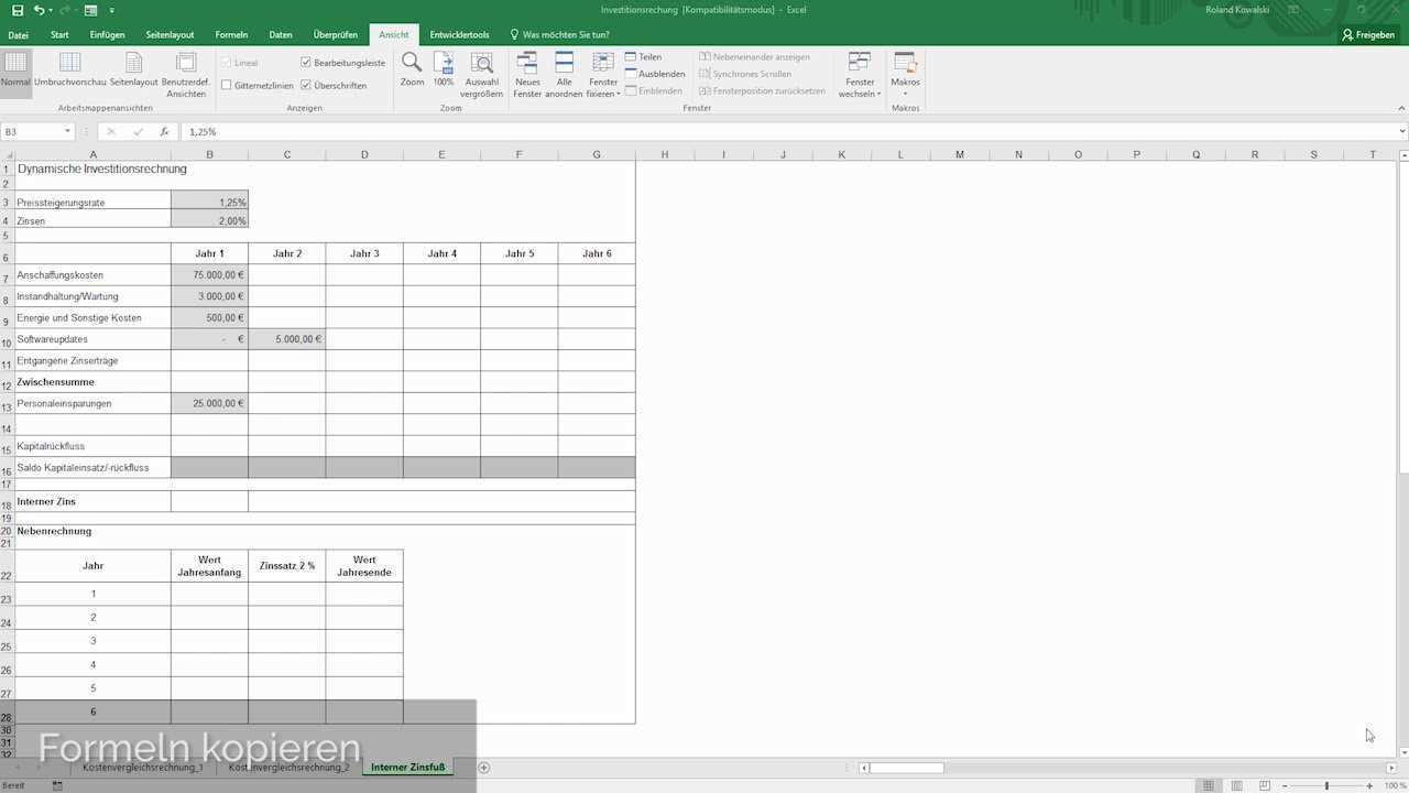 Wirtschaftlichkeitsberechnung Beispiel Excel