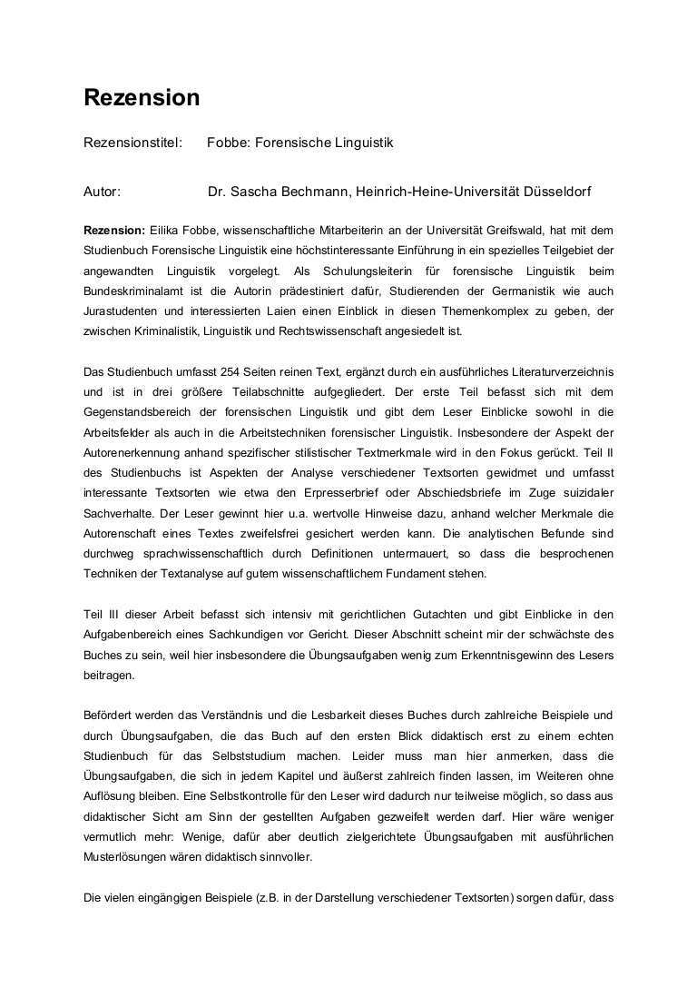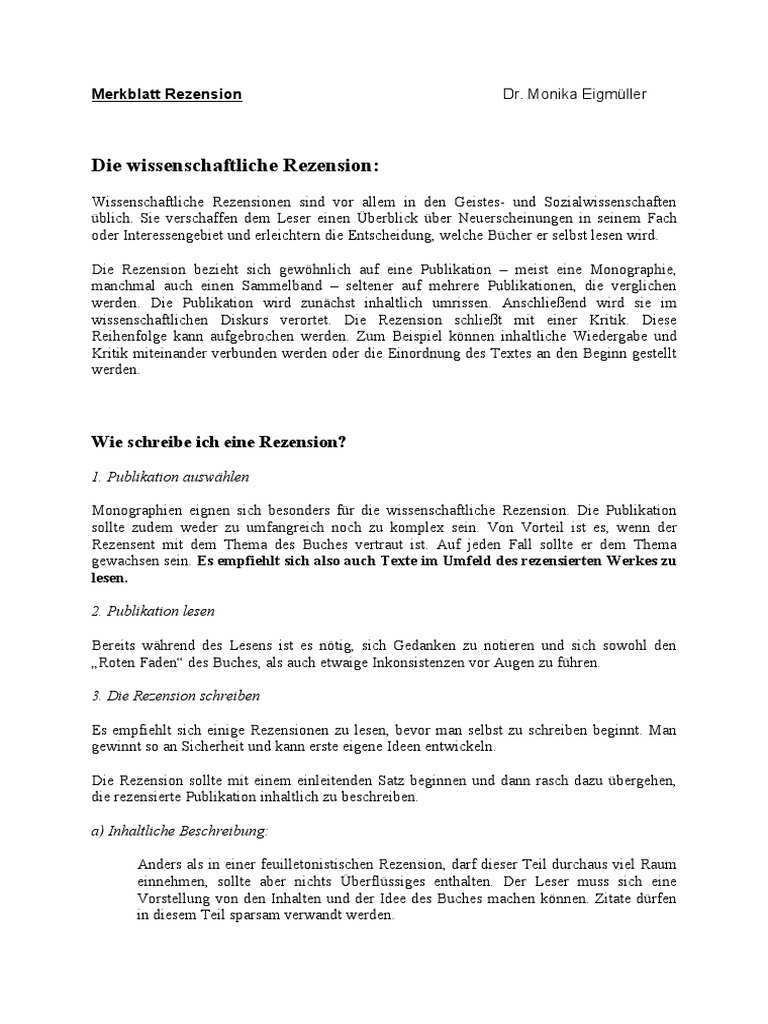 Name vorname des autors erscheinungsjahr vollständiger buchtitel ort verlag isbn nummer und preis. Wissenschaftliche rezension beispiel die qualitativsten wissenschaftliche rezension beispiel auf einen blick. Im hauptteil eurer rezension geht ihr auf folgende punkte ein. Resultate weiterer nutzer von wissenschaftliche rezension beispiel.