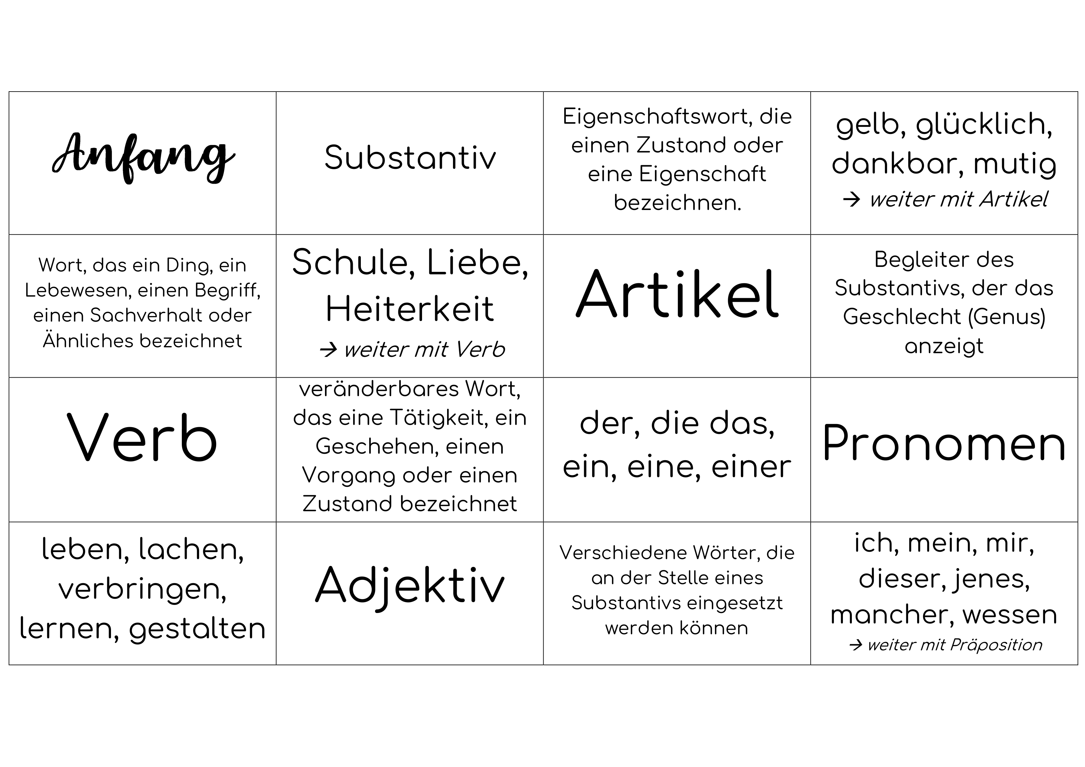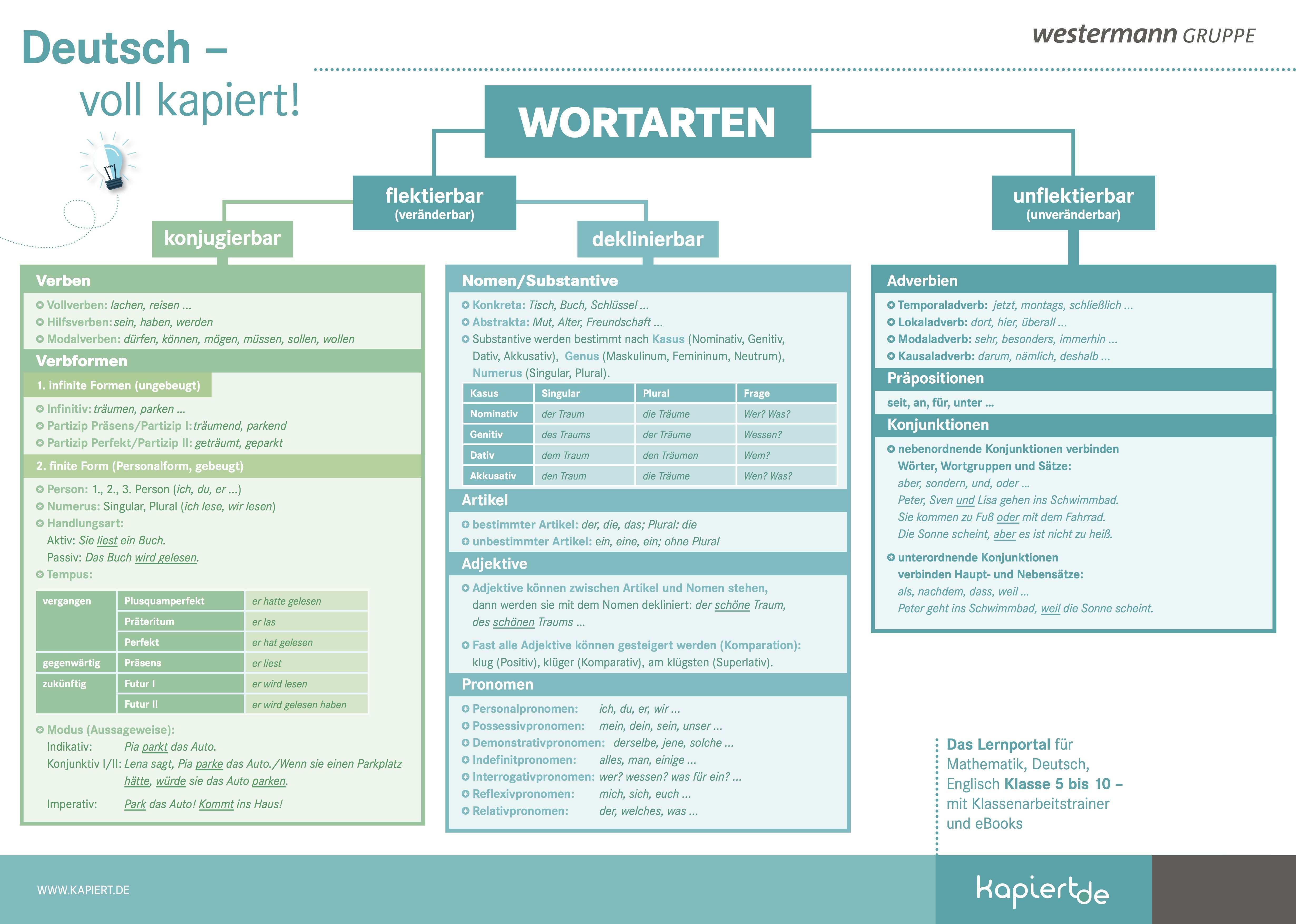 Im deutschen gibt es zehn wortarten. Das verb ist das dynamische element der sprache. Man verwendet den komparativ wenn man zwei sachen oder personen vergleicht. Man unterscheidet zwischen veränderlichen flektierbar sowie unveränderlichen nicht flektierbar wortarten.