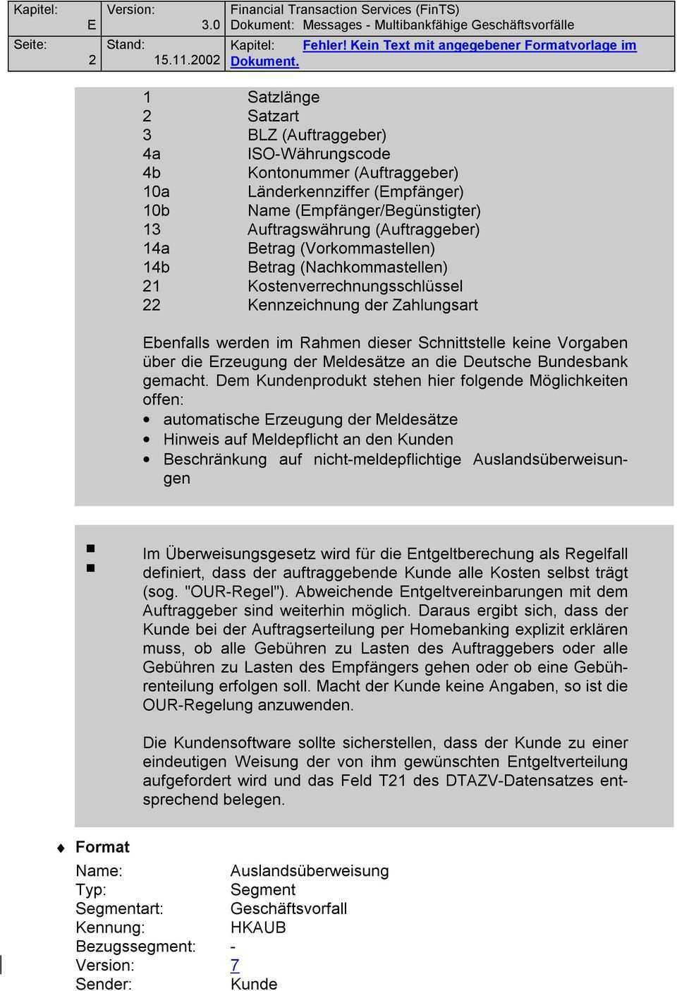 Bitte beachten sie dass für zahlungsaufträge im außenwirtschaftsverkehr kosten gemäß dem aktuell gültigen preis und leistungsverzeichnis berechnet werden.