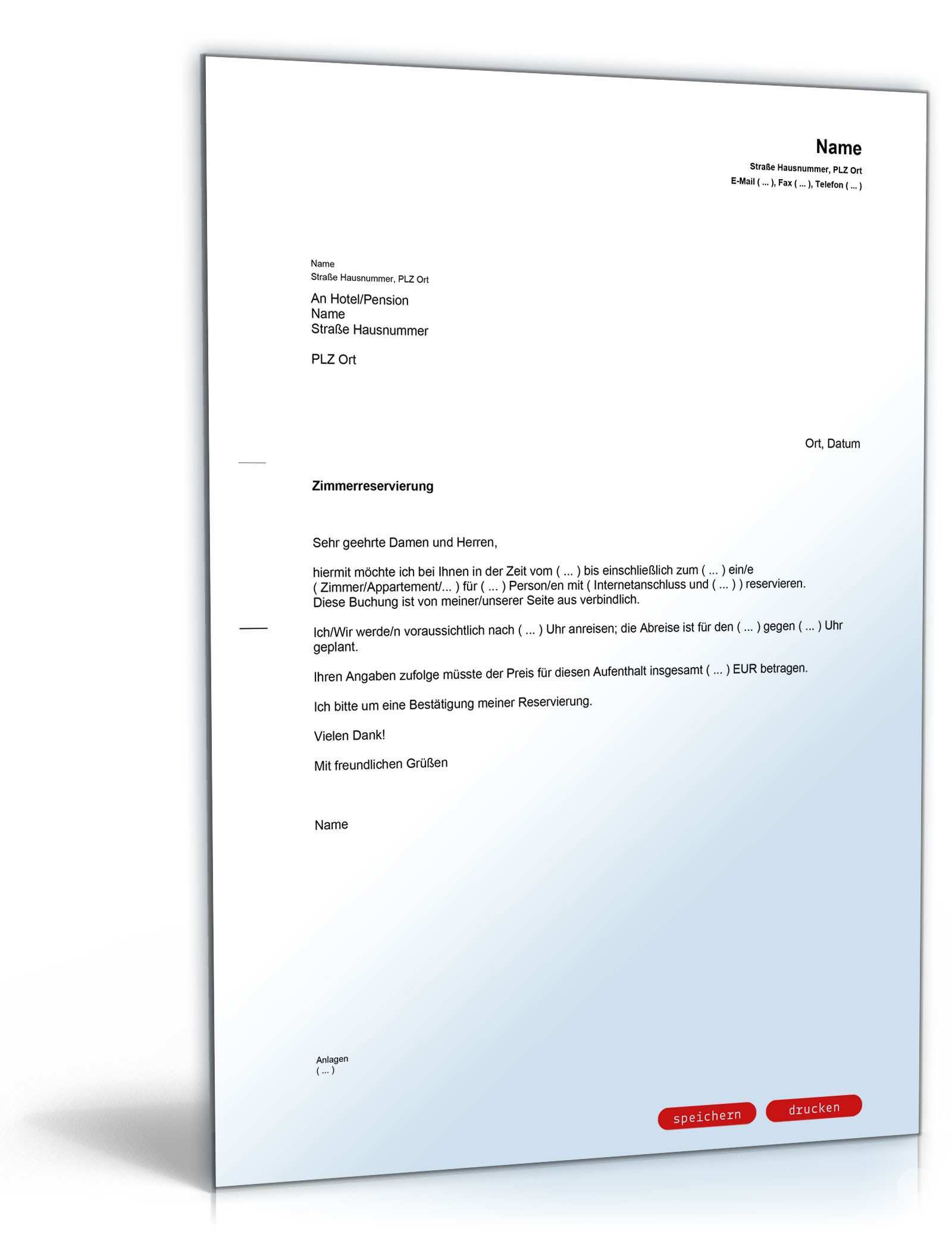 Zimmerreservierung Muster Kostenlos