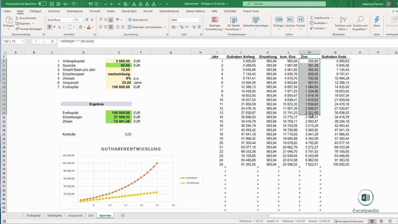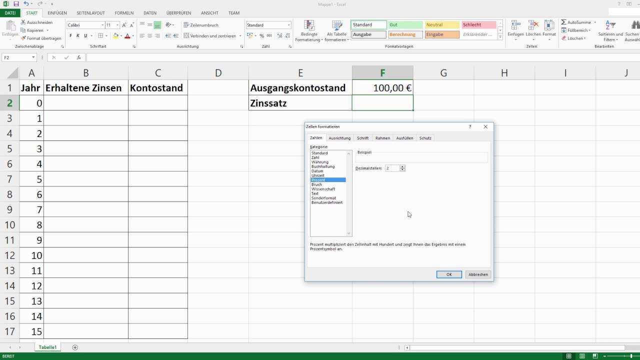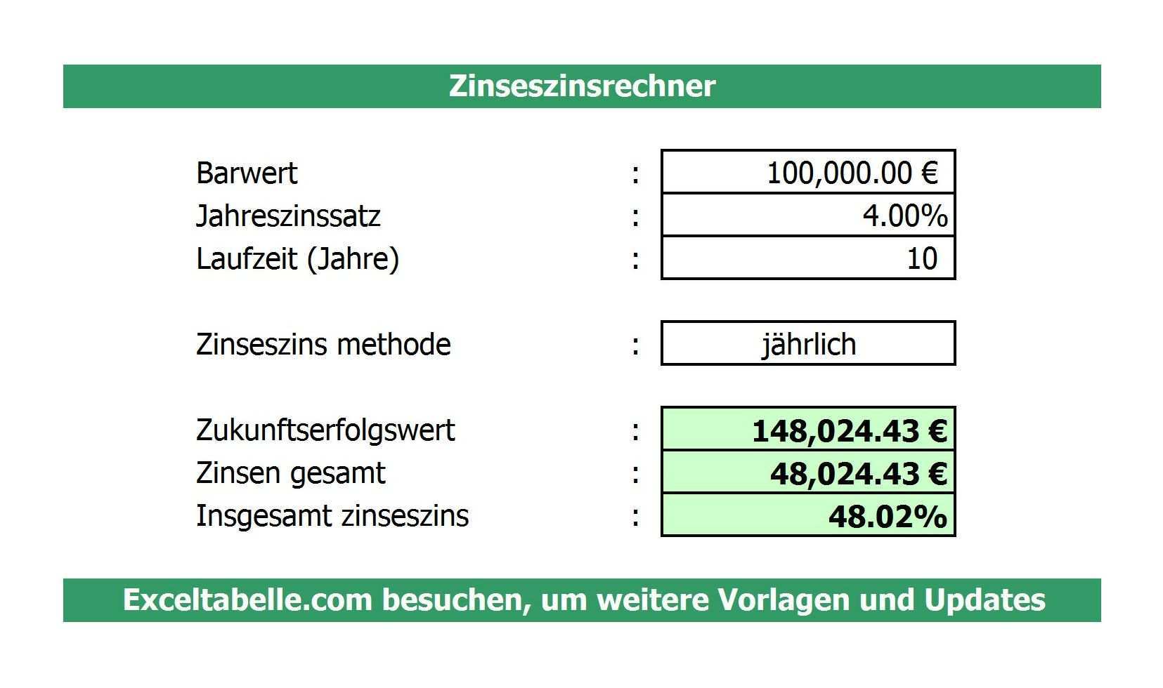 Zinseszins Excel Vorlage