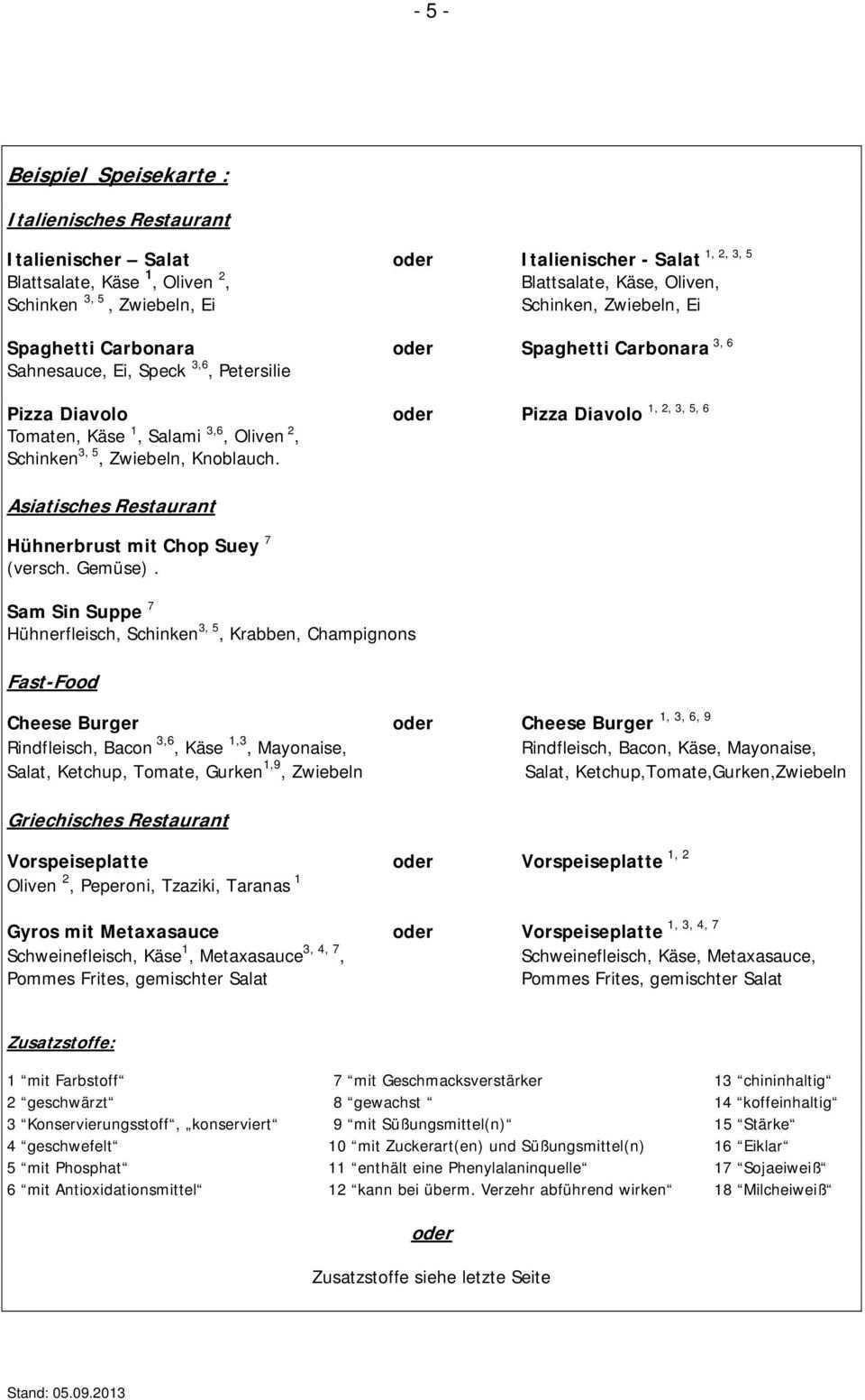 Auch ihren gästen zuliebe sollten sie die kennzeichnung ernst nehmen und stets beachten. Präzise und einfache suche nach millionen von b2b produkten dienstleistungen schau dir angebote von mustern auf ebay an. 3 mit antioxidationsmittel nr. 5 beispiele von speisekarten mit deklarierten.