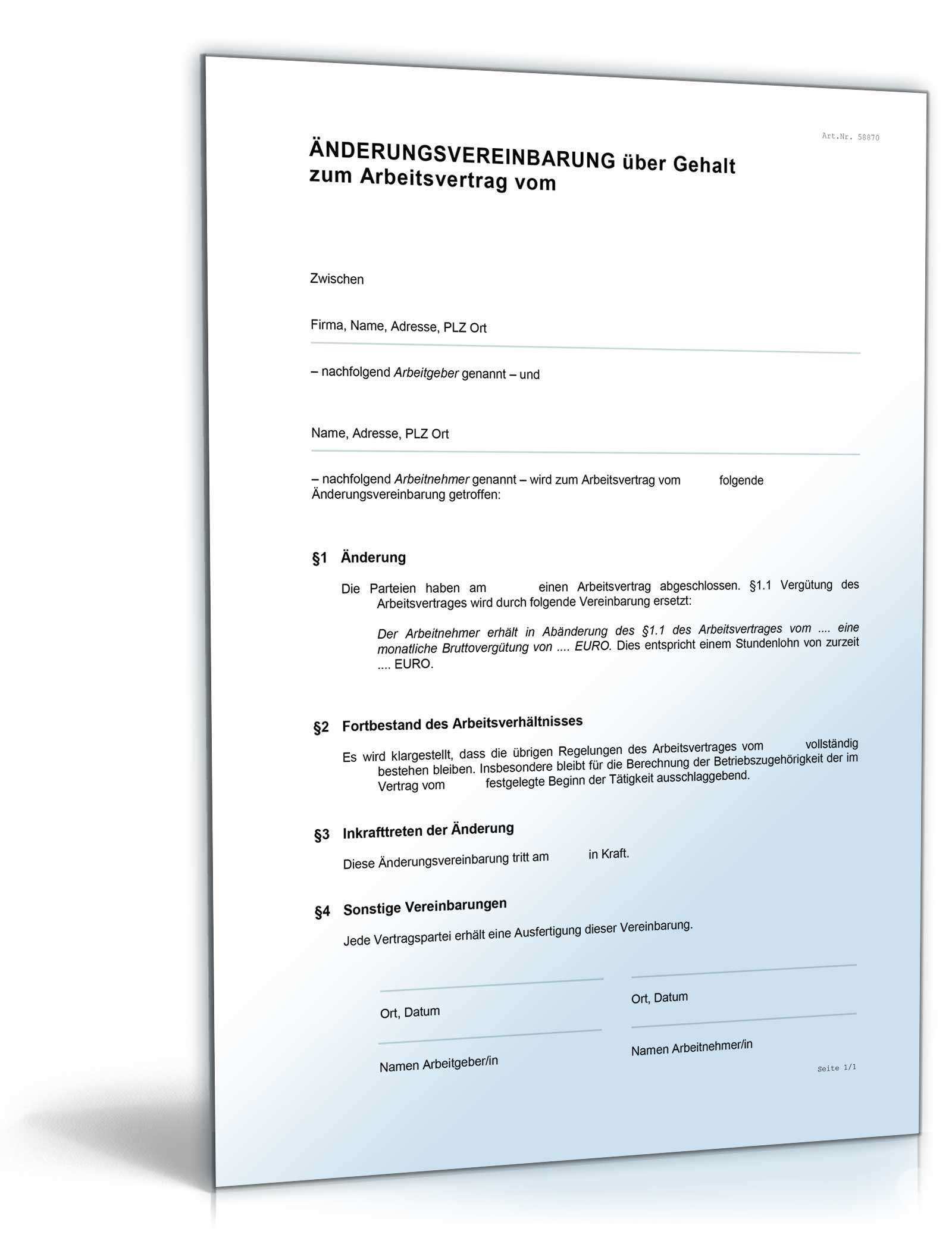 Zusatzvereinbarung Zum Arbeitsvertrag Muster