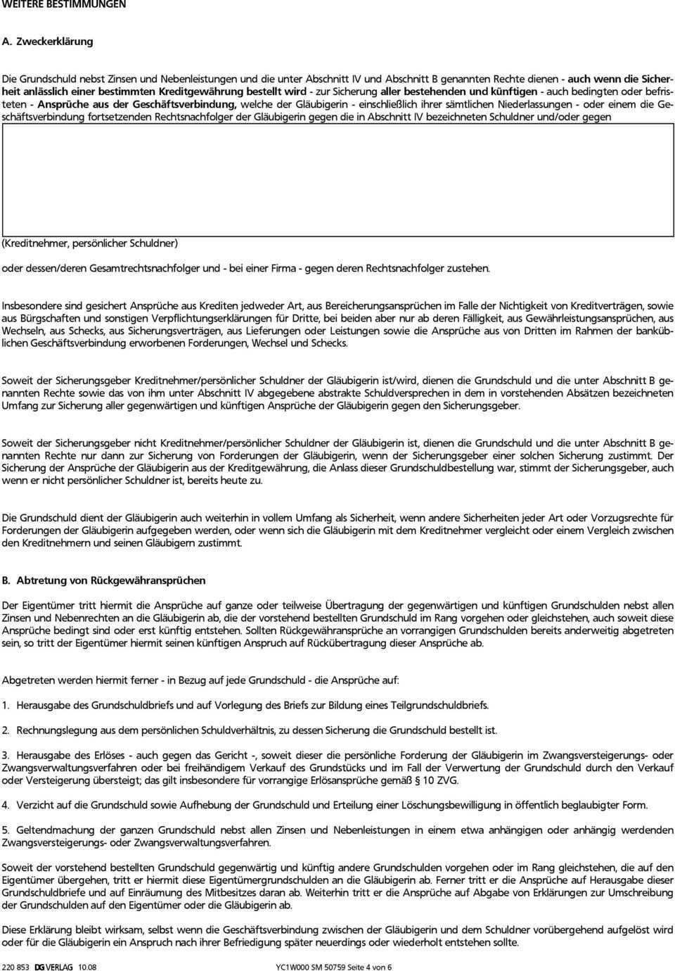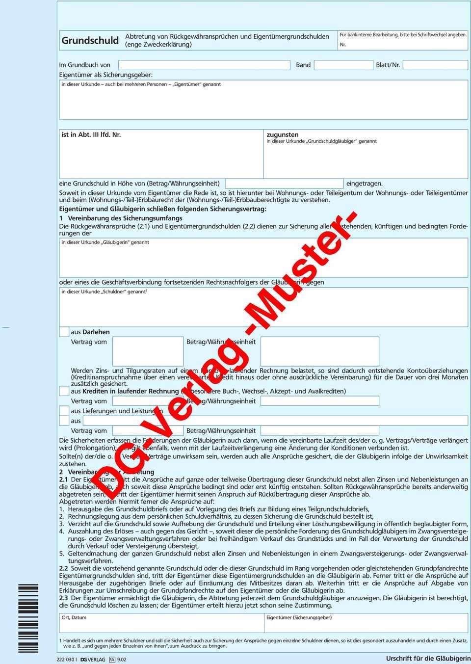 Die grundschuld die übernahme der persönlichen haftung sowie die abtretung der rückgewähransprüche dienen der sicherung aller bestehenden künftigen und bedingten ansprüche die der bank mit ihren sämtlichen in und ausländischen geschäftsstellen aus der bankmäßigen geschäftsverbindung gegen den sicherungsgeber darlehensnehmer. Eine entsprechende zweckerklärung hätte dann diesen wortlaut. Sie wird auch als abstraktes schuldanerkenntnis oder schuldversprechen bezeichnet. 1234 über 100 000 euro gegen max muster die weite fassung der sicherungsabrede.