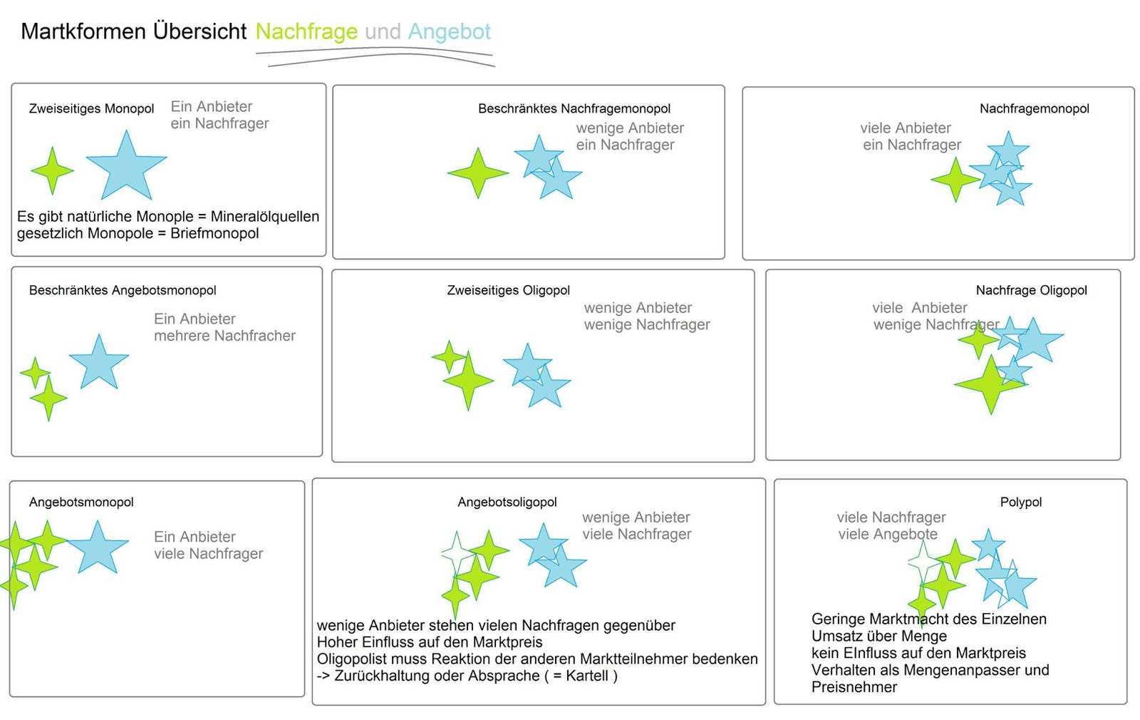 Nenne die marktformen und ihre beispiel. Die kunden stehen in abhängigkeit von ihrem angebot und bei einem ausnutzen der monopolstellung können wohlfahrtsverluste entstehen. Denn früher besaß einerseits die bahn das monopol auf den fernverkehr andererseits hat die telekom die gesamte telekommunikation geregelt. So galt in deutschland lange zeit ein briefmonopol der deutschen post.